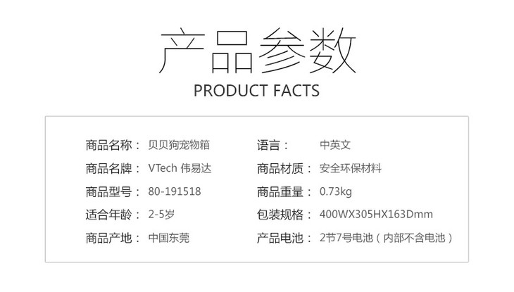 VTech伟易达贝贝狗宠物箱 过家家玩具