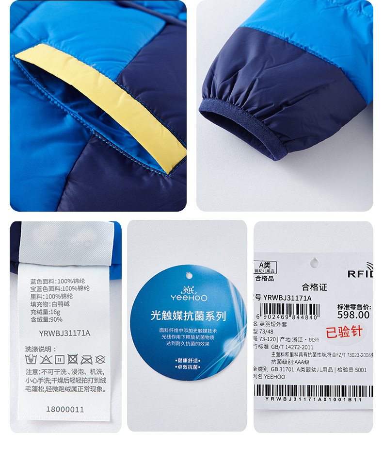 英氏-童衣类(冬)E1英羽短外套电光蓝80CM
