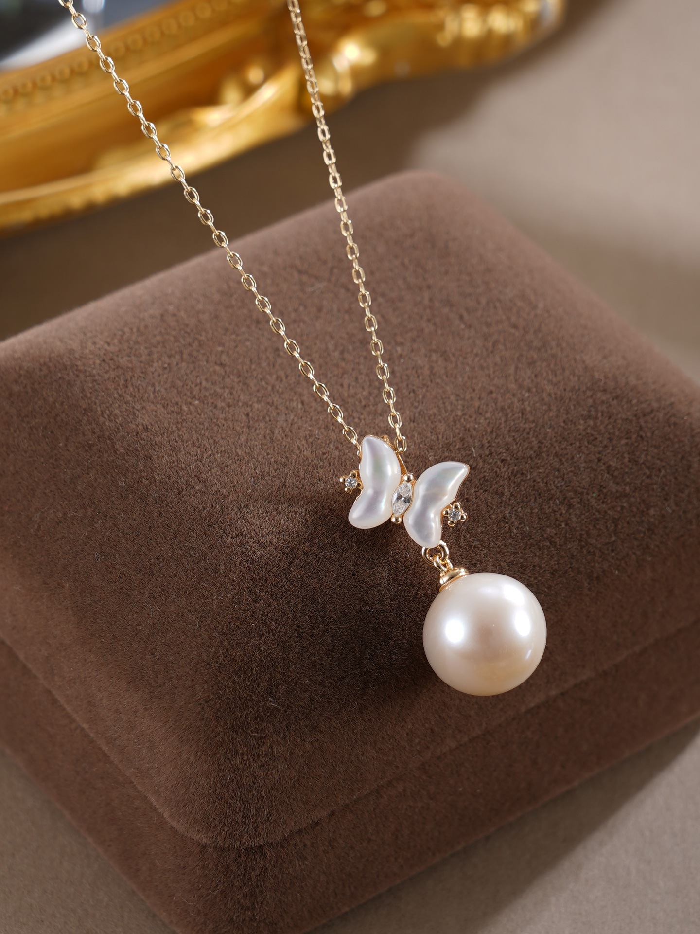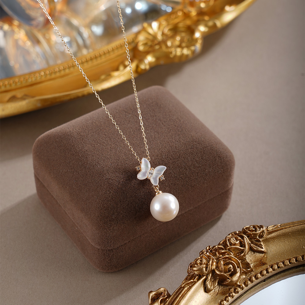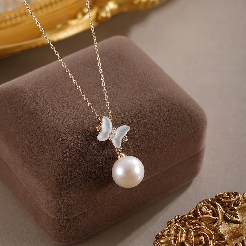 子佩集【蝴蝶曦光】银S925珍珠惜王妃套链【MLTL021】10mm珠镀金蝴蝶2601