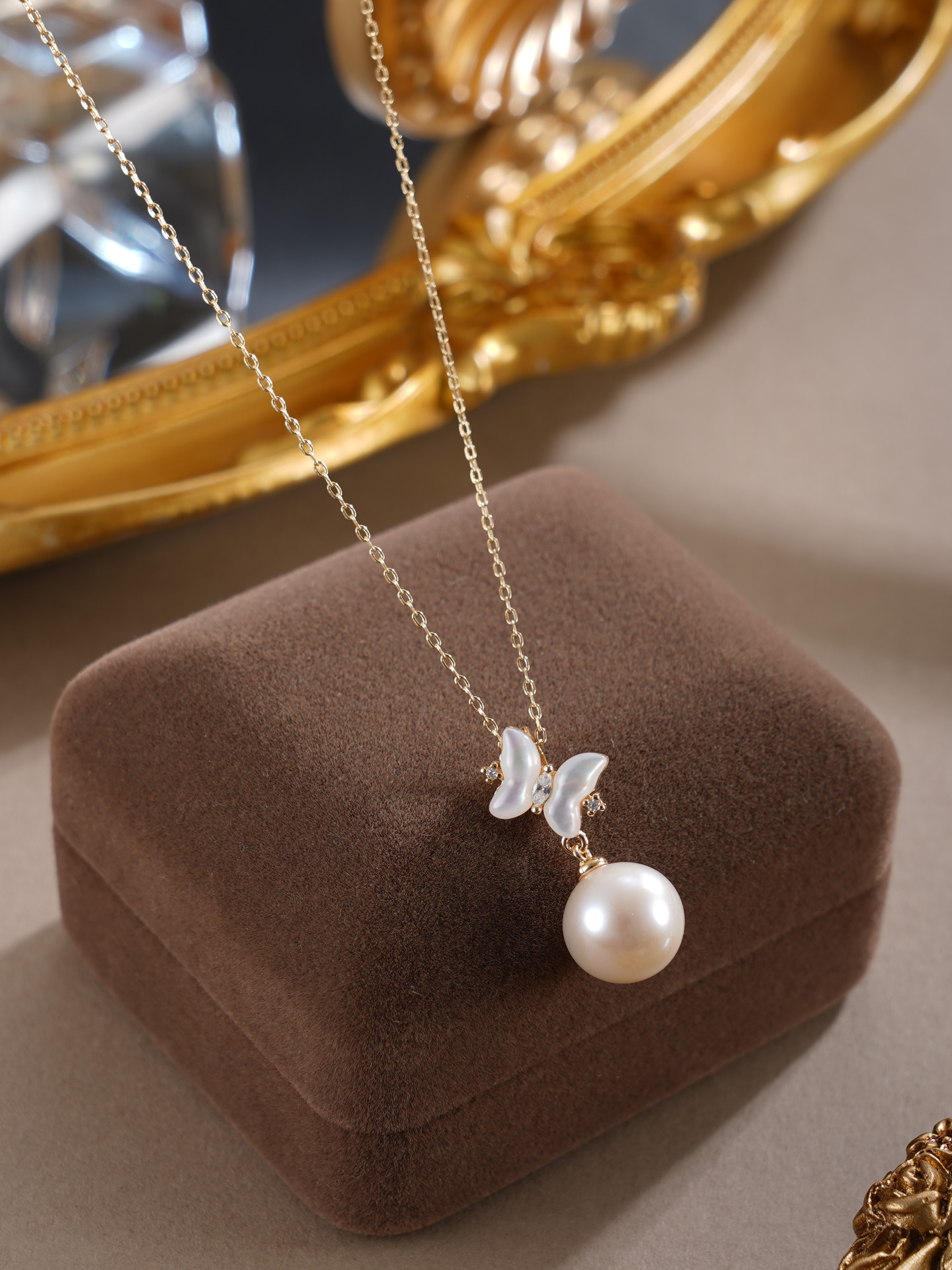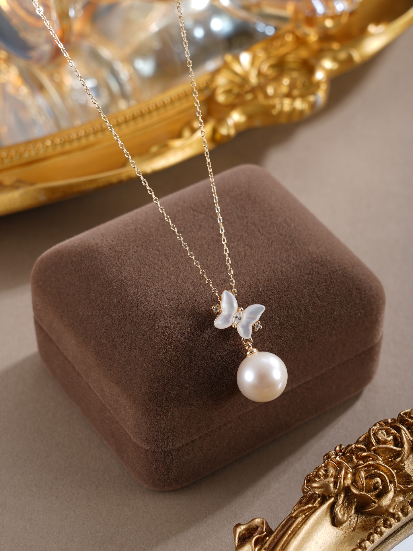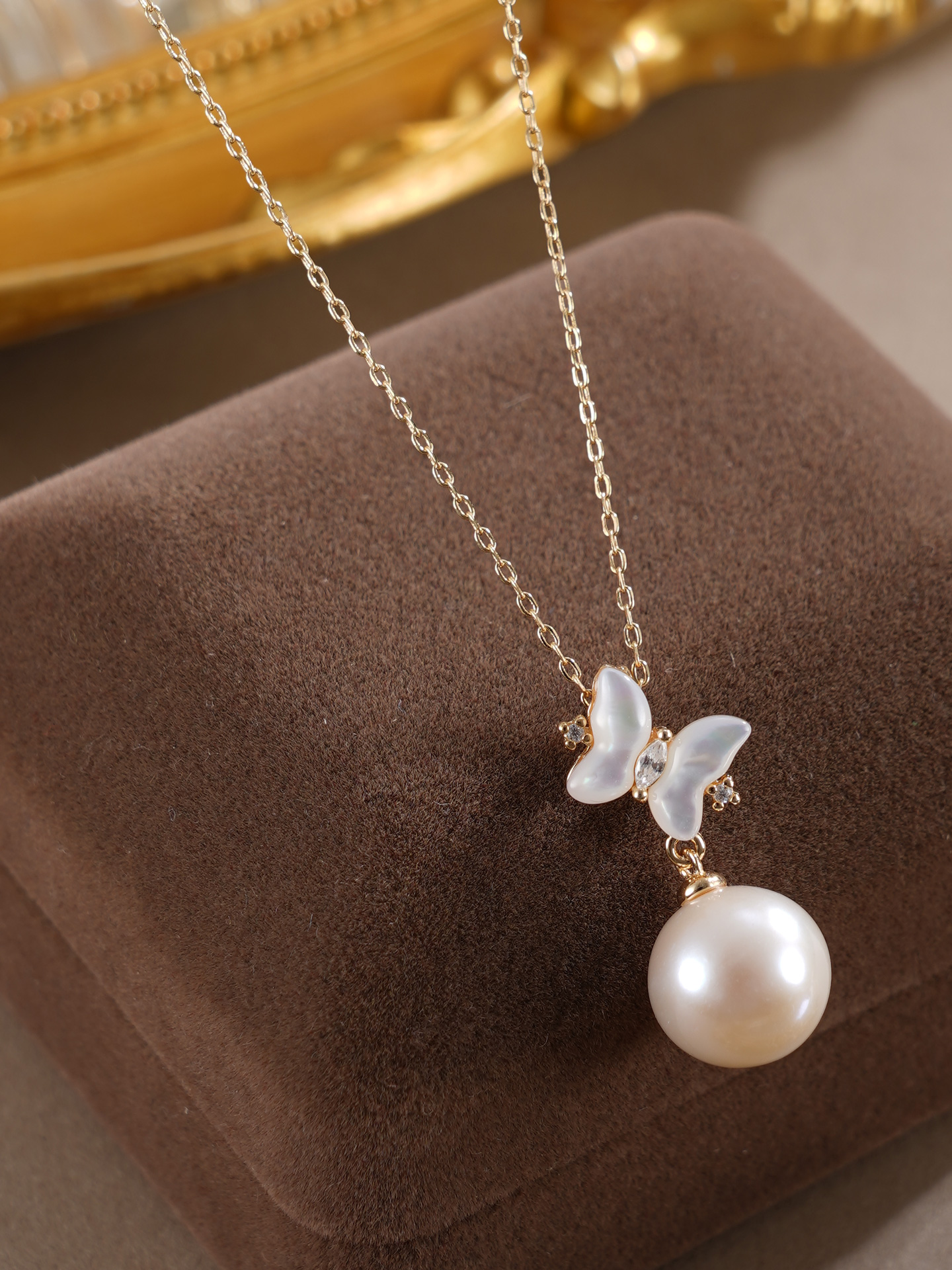 子佩集【蝴蝶曦光】银S925珍珠惜王妃套链【MLTL021】10mm珠镀金蝴蝶2601