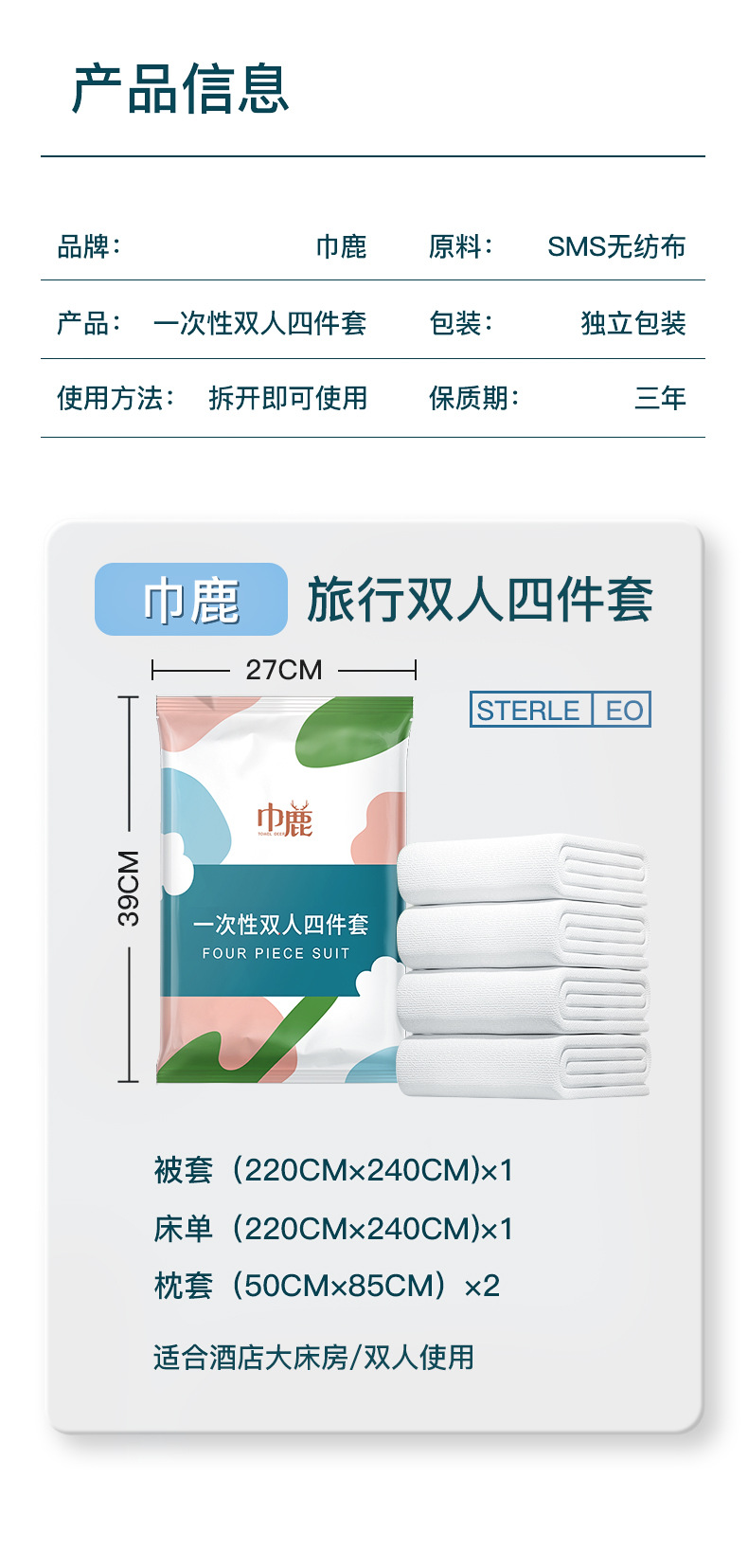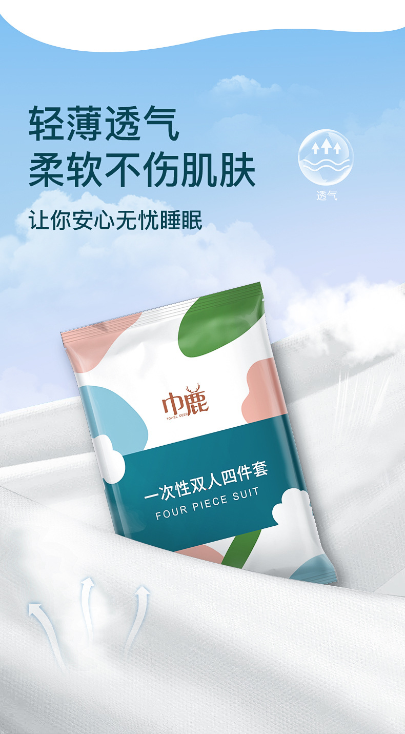 【旅途随身伴侣!被套四件套】干净舒适,方便快捷,床单、被罩、枕套、被套四件套,轻盈便携,旅途中的隔脏好帮手。让你的睡眠舒适又安心,酒店一次性床单被罩枕套被套四件套旅游旅行隔脏床上用品便携式