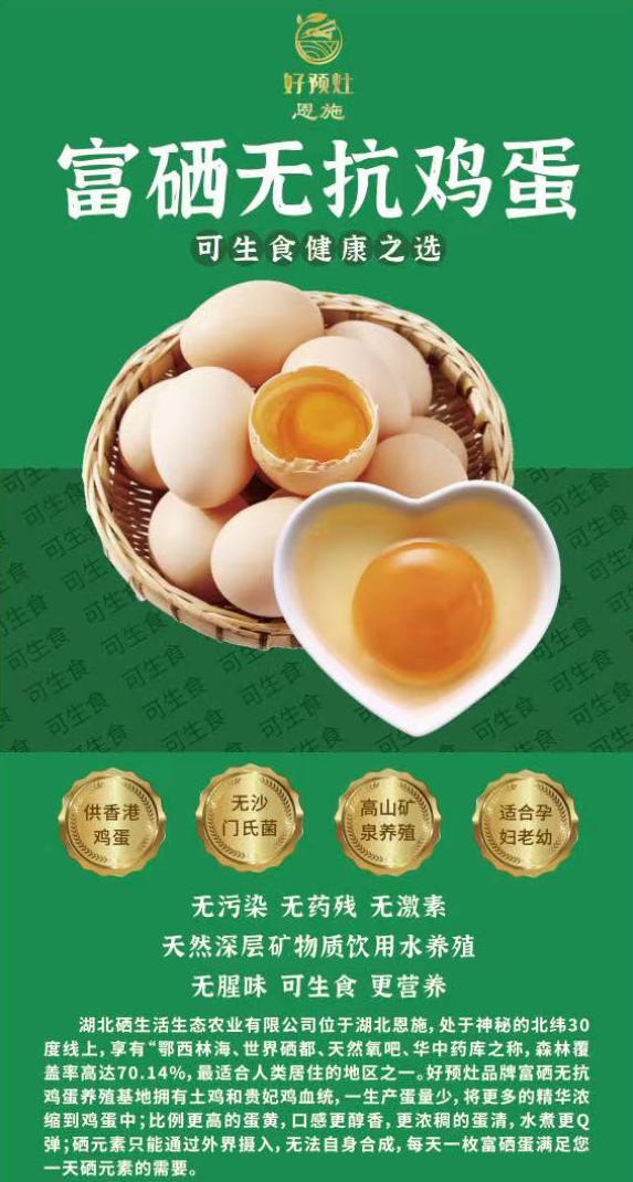 湖北恩施可生食富硒无抗鸡蛋(约1650g/盒 30枚 单颗约55g)生产日期:4月13日 保质期:冷藏30天