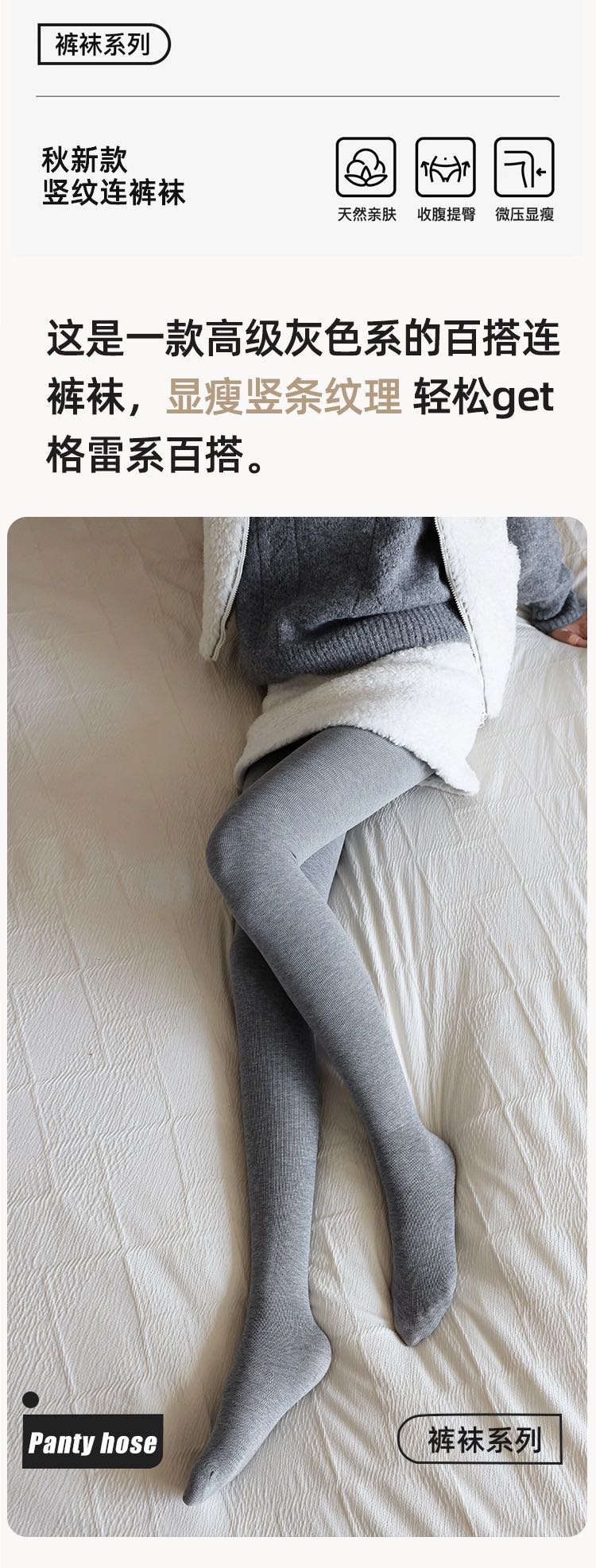 秋冬女士裸感打底【竖条纹加绒打底裤】 柔软亲肤 提拉臀线 显高显瘦 抗起球防勾丝 内搭外穿