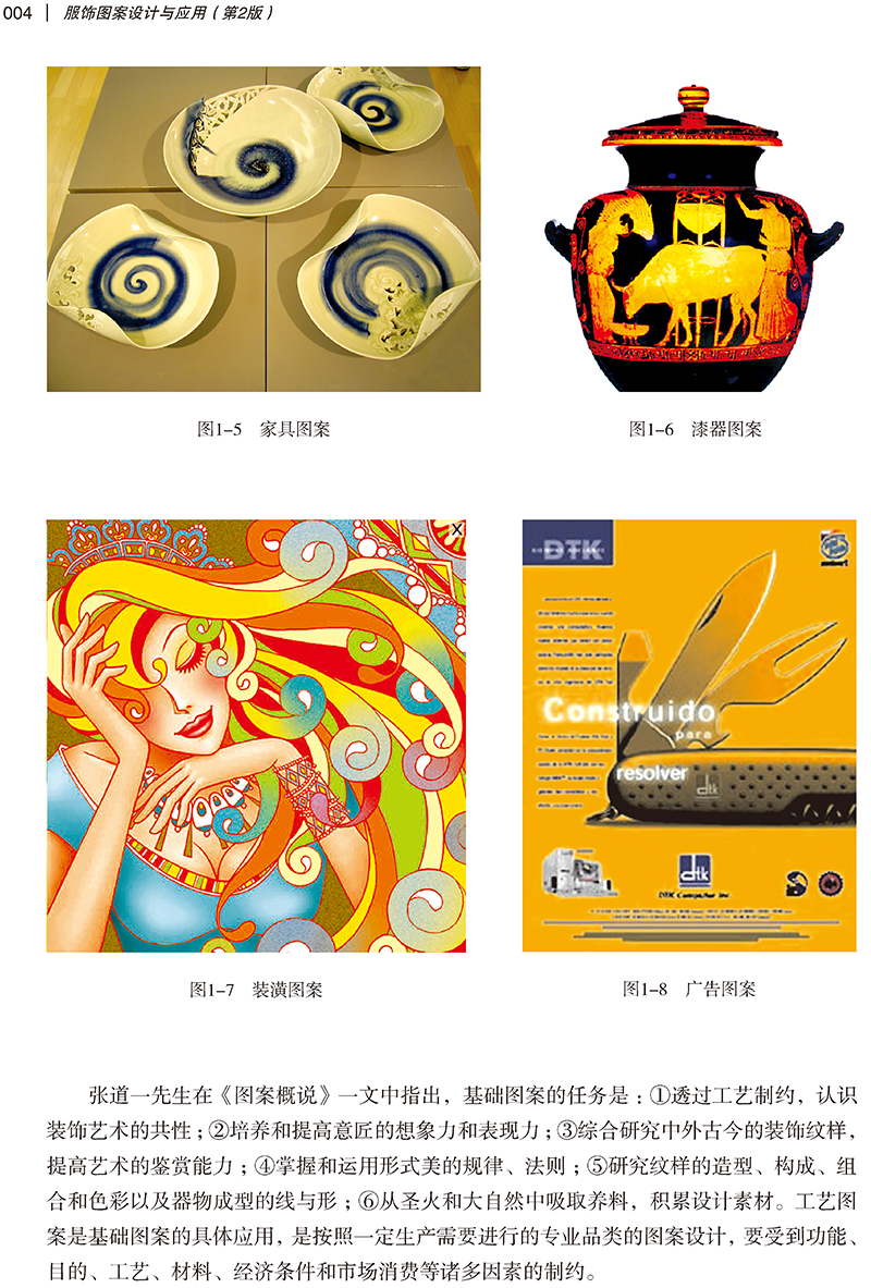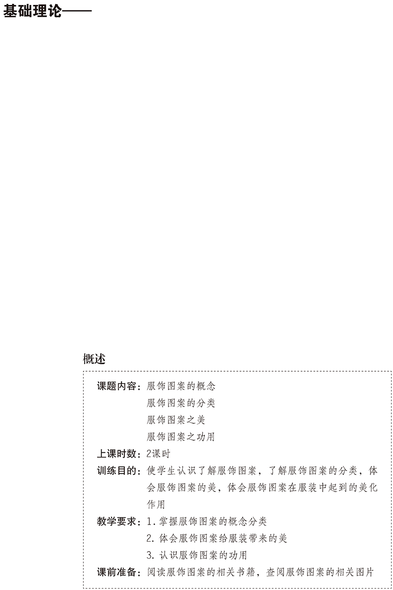 本书是高等服装院校的服装专业教材,也是服装设计人员了解服饰图案设计相关知识的参考书。