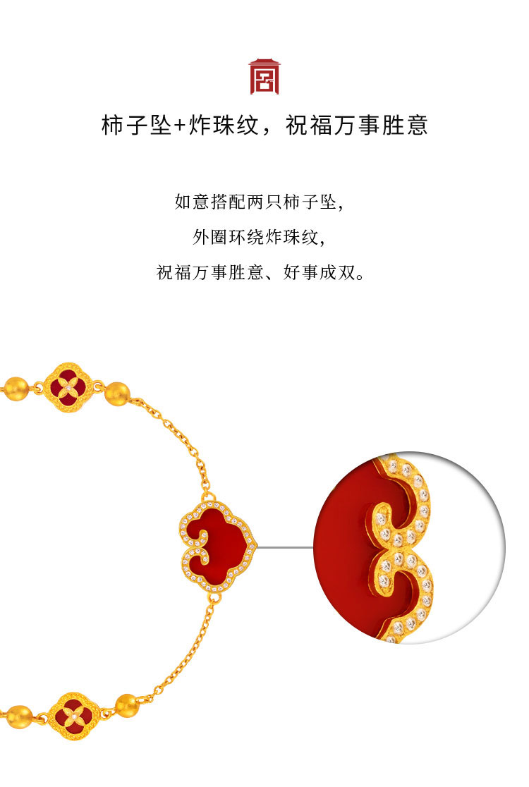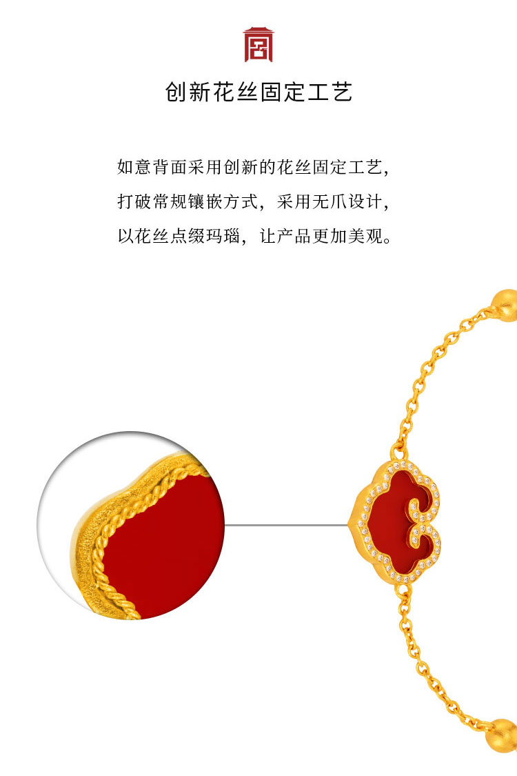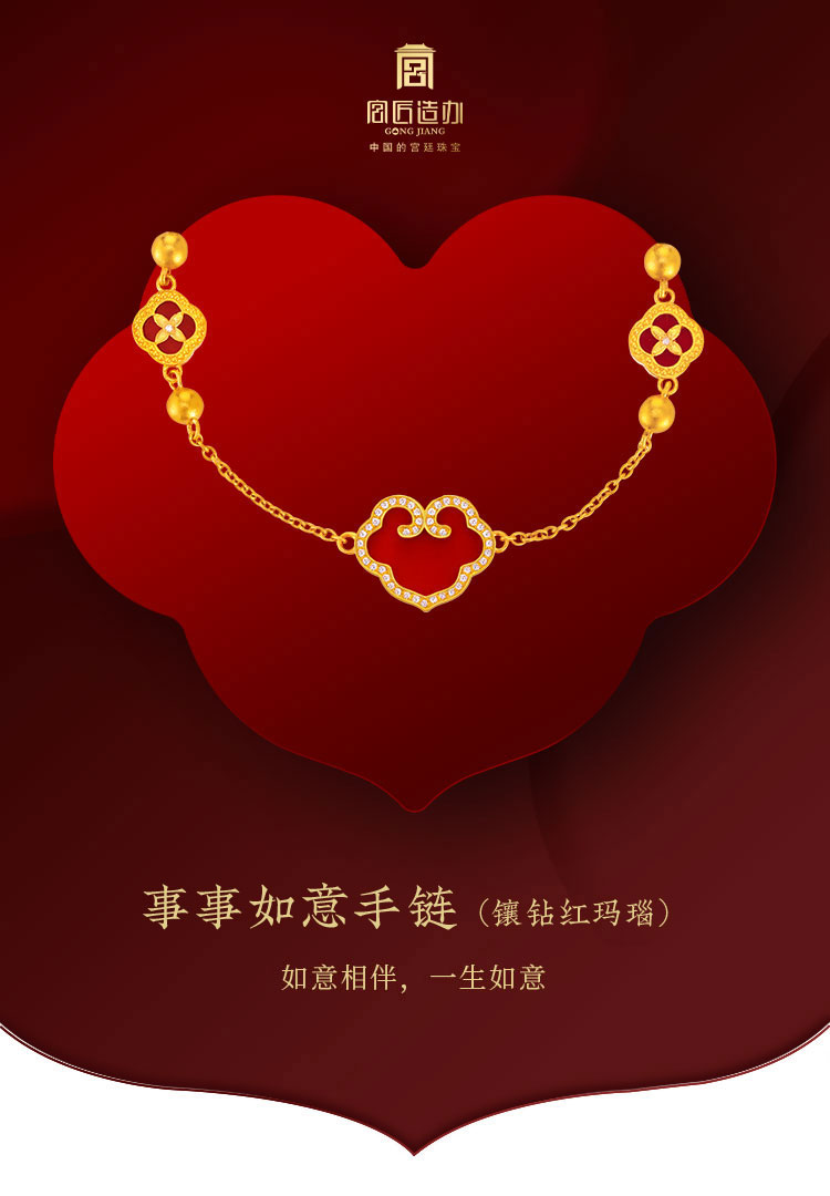宫匠造办 事事如意手链 黄金镶钻红玛瑙