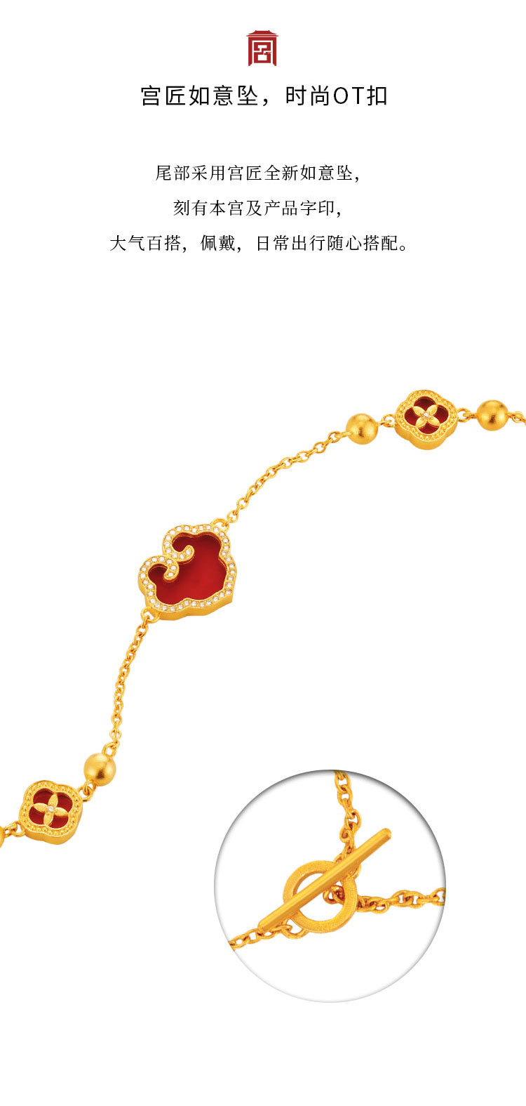 宫匠造办 吉祥如意项链 黄金镶红玛瑙