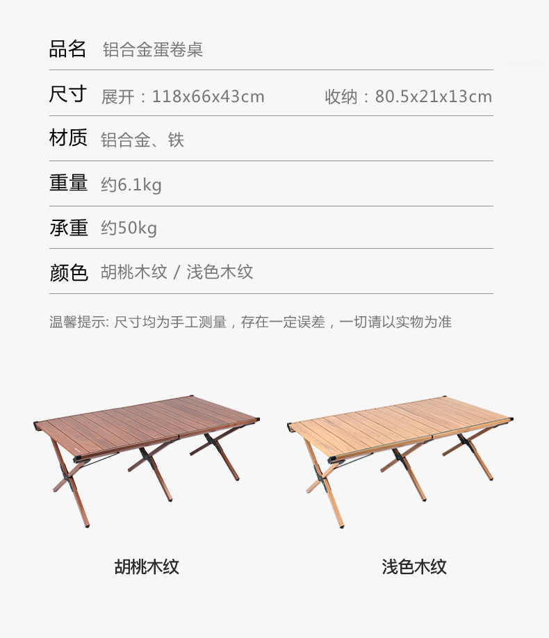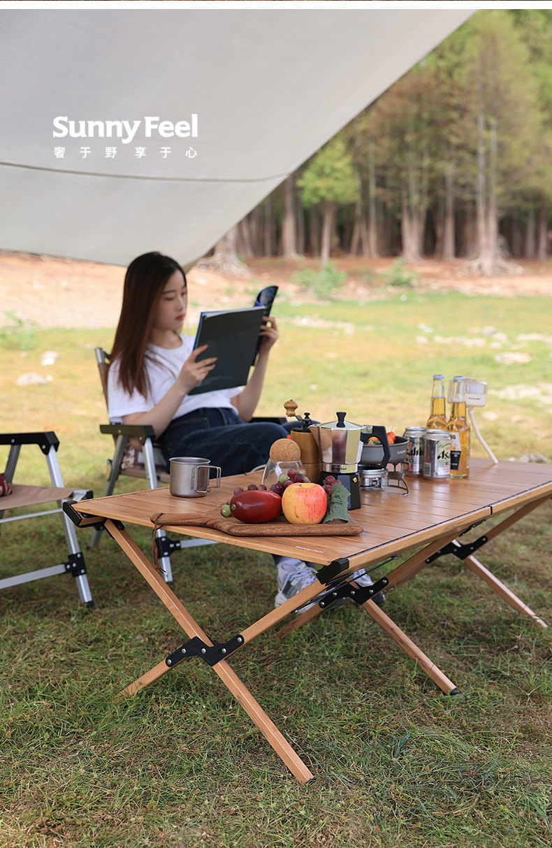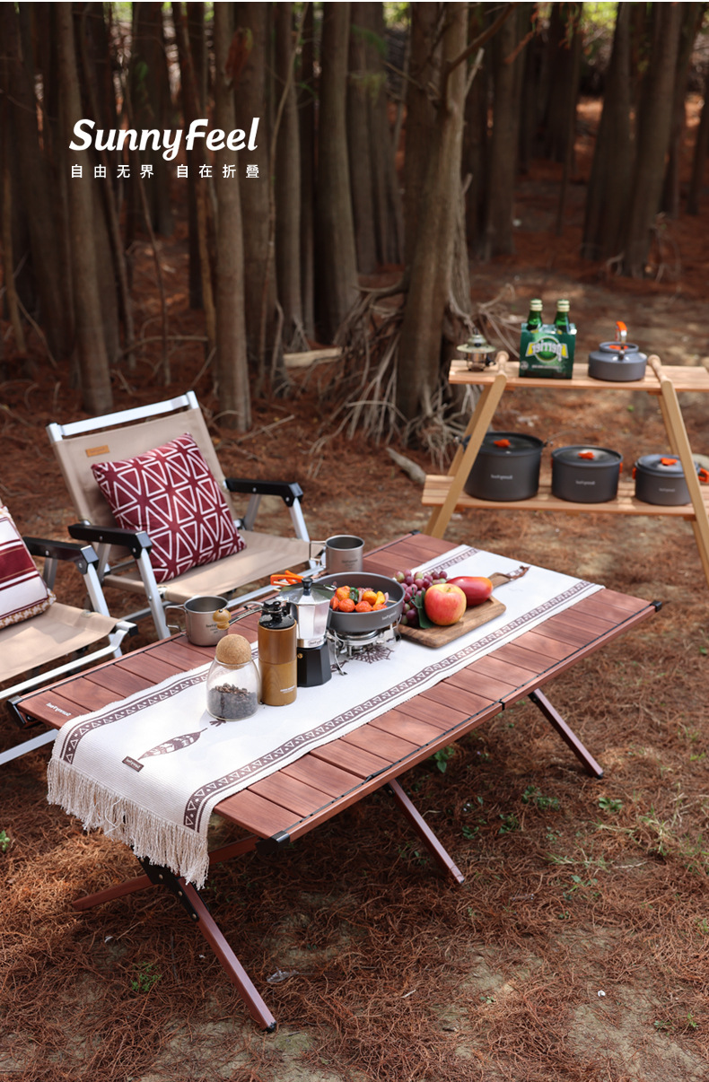 SunnyFeel户外餐桌椅露营折叠桌便携铝合金蛋卷桌折叠野营桌子