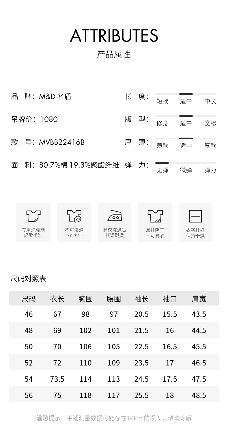 | 男装品牌: M&D/名盾 | 货号: MVBB22416B |