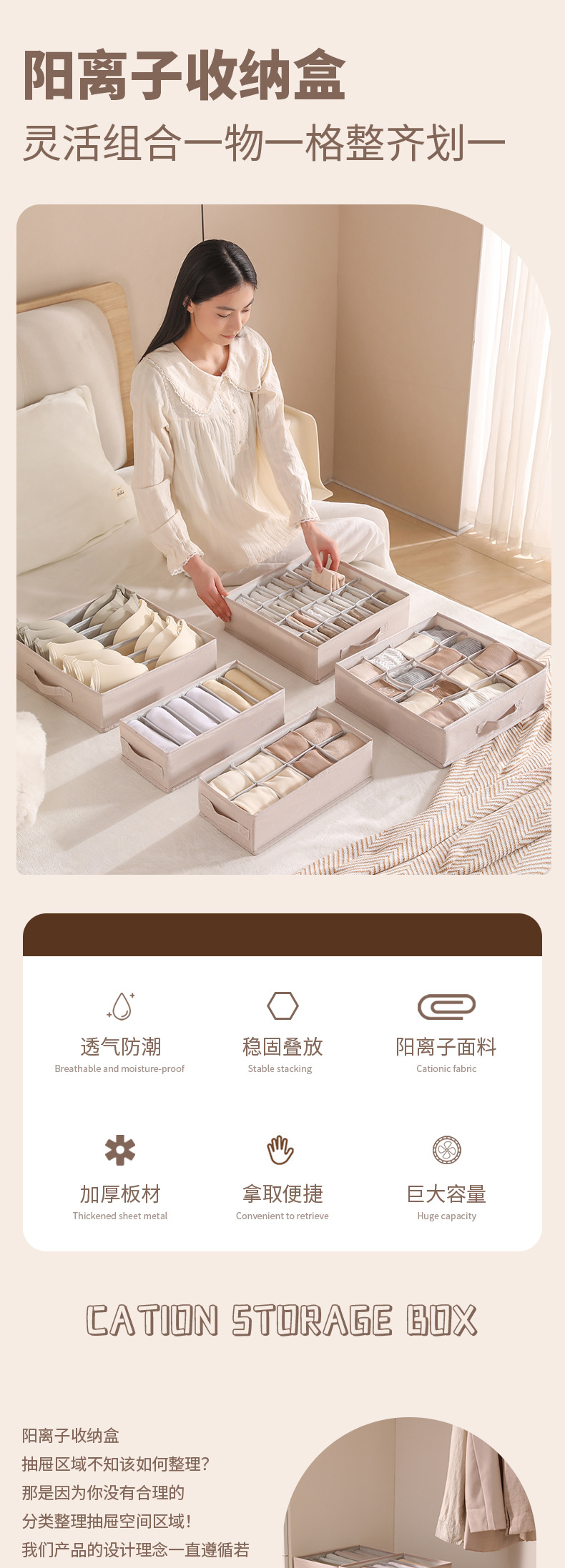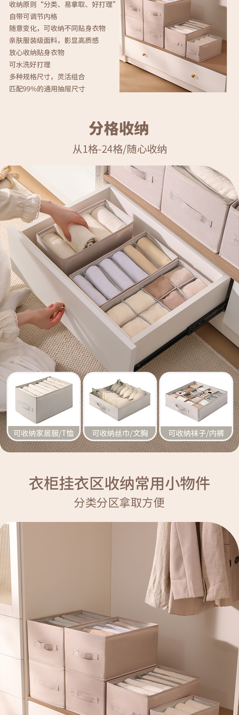 【阳离子收纳盒❗分类分区拿取方便】内衣收纳盒三合一内裤文胸袜子分隔整理盒衣服收纳箱抽屉式。rh