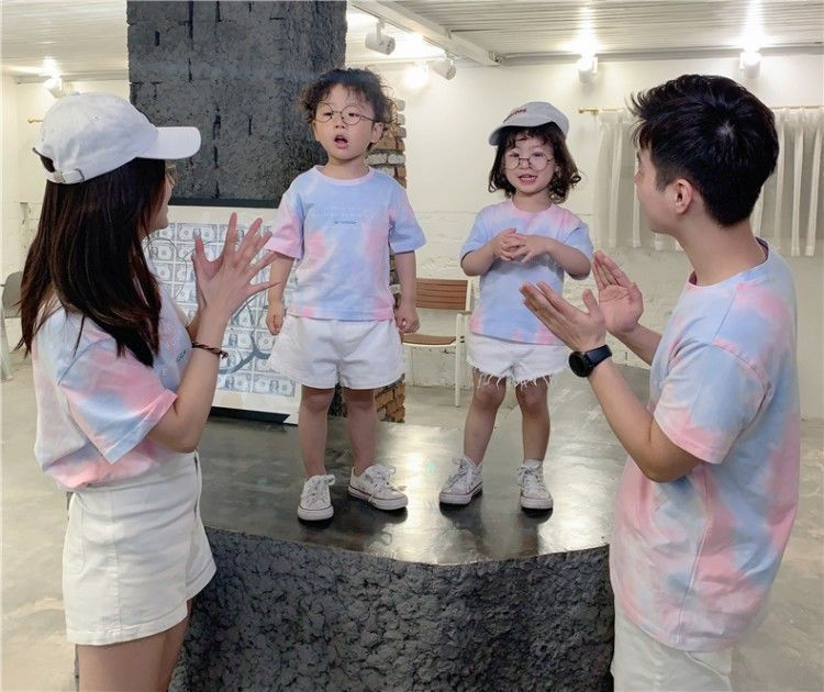 扎染T恤短袖亲子装一家三口四口夏季韩版休闲时尚母女父子装上衣国庆清明出游