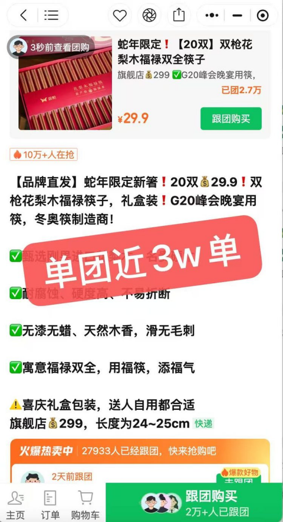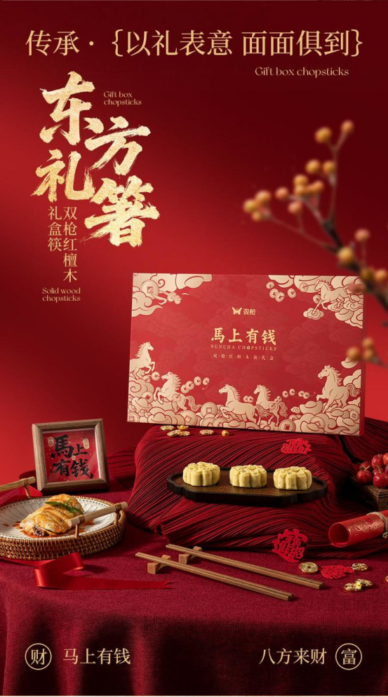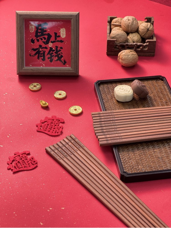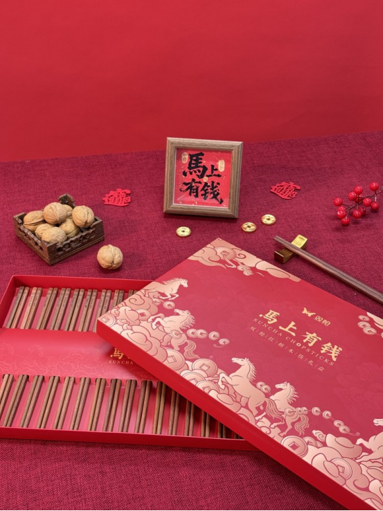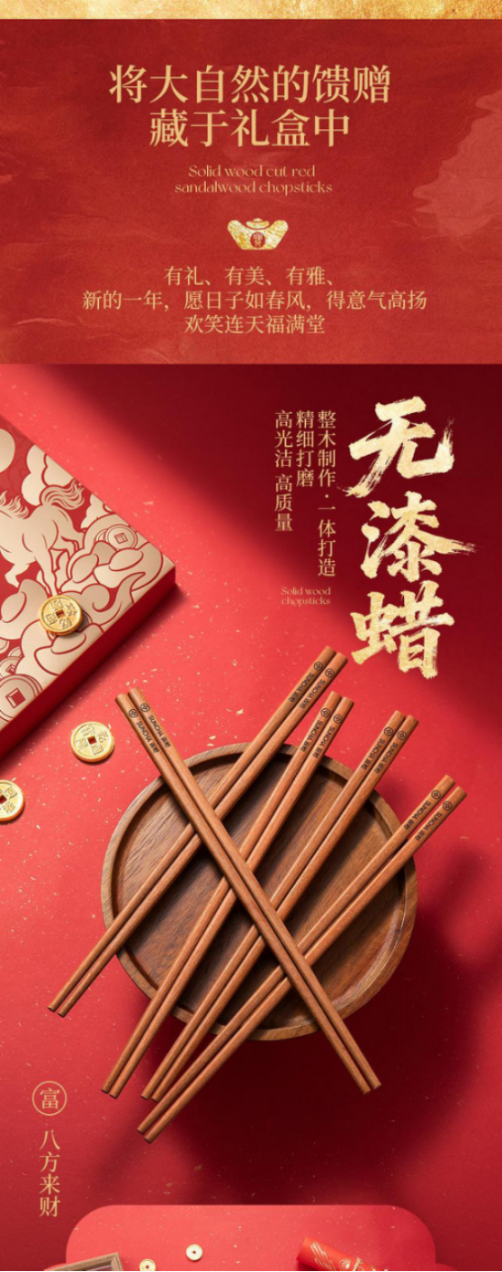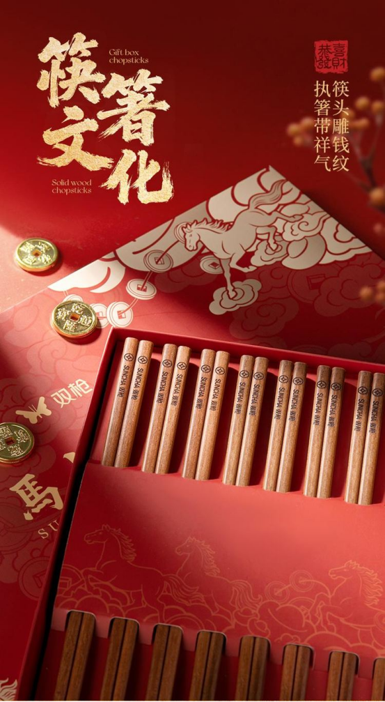 去年一团将近3w单的礼盒筷,26年全新升级! 【红檀木来财筷】 马上有钱,红檀木筷寓意财运“筷”来! 红檀木因色泽温润、纹理精美 如同皇后一般雍容华贵 受到文人雅士、贵族阶层的喜爱 是追求品质生活的首选之材