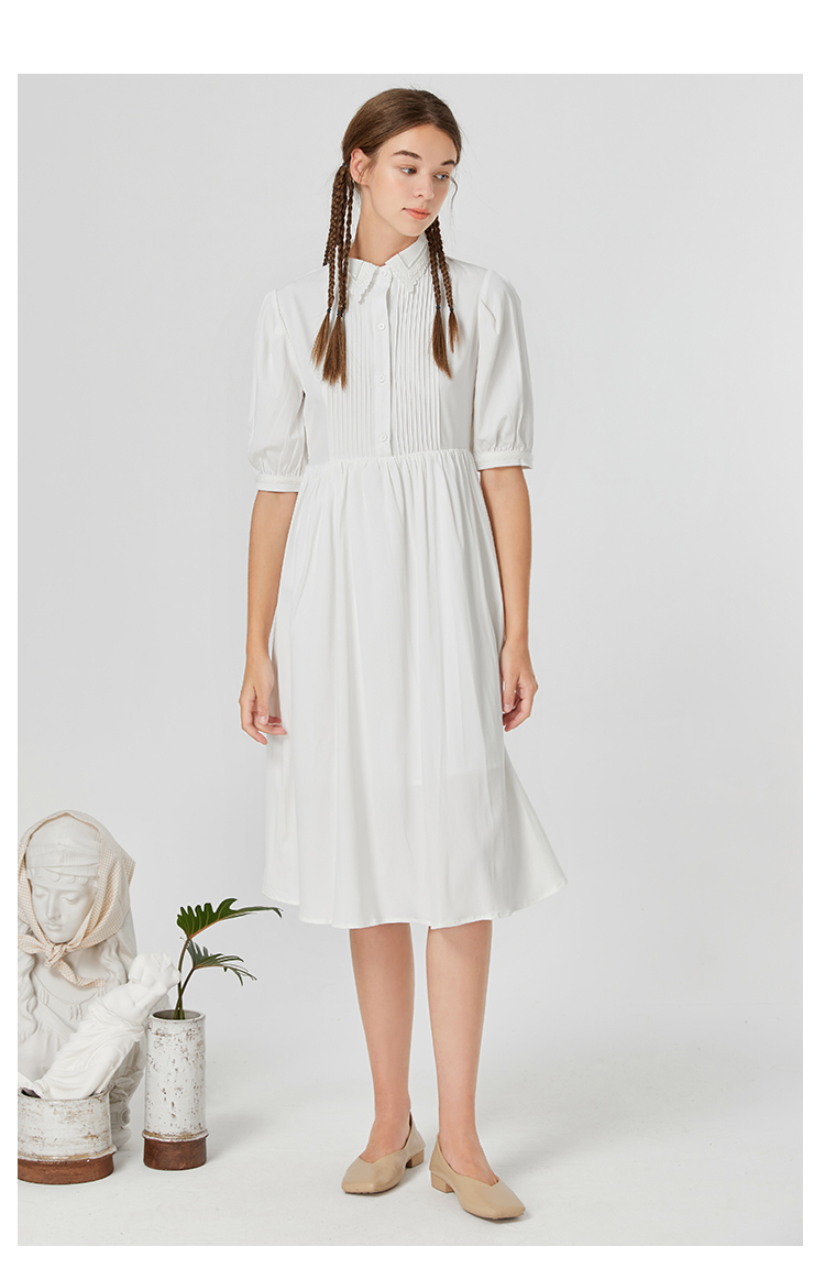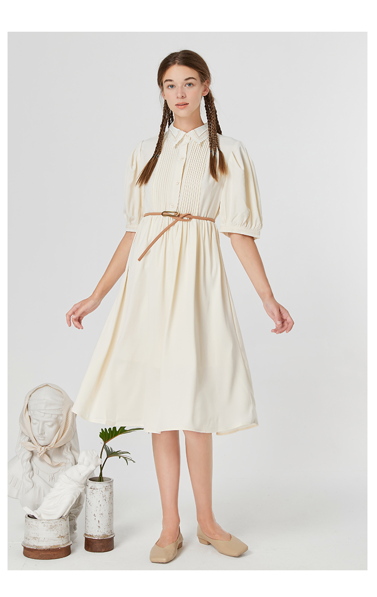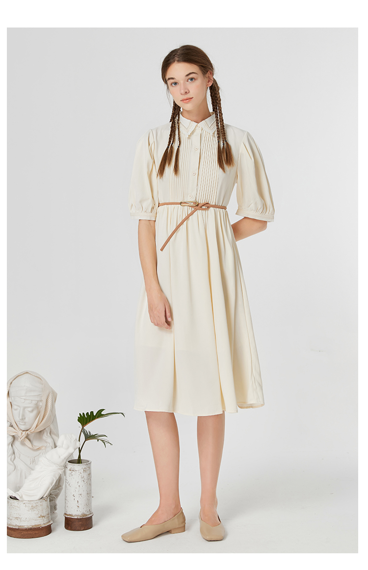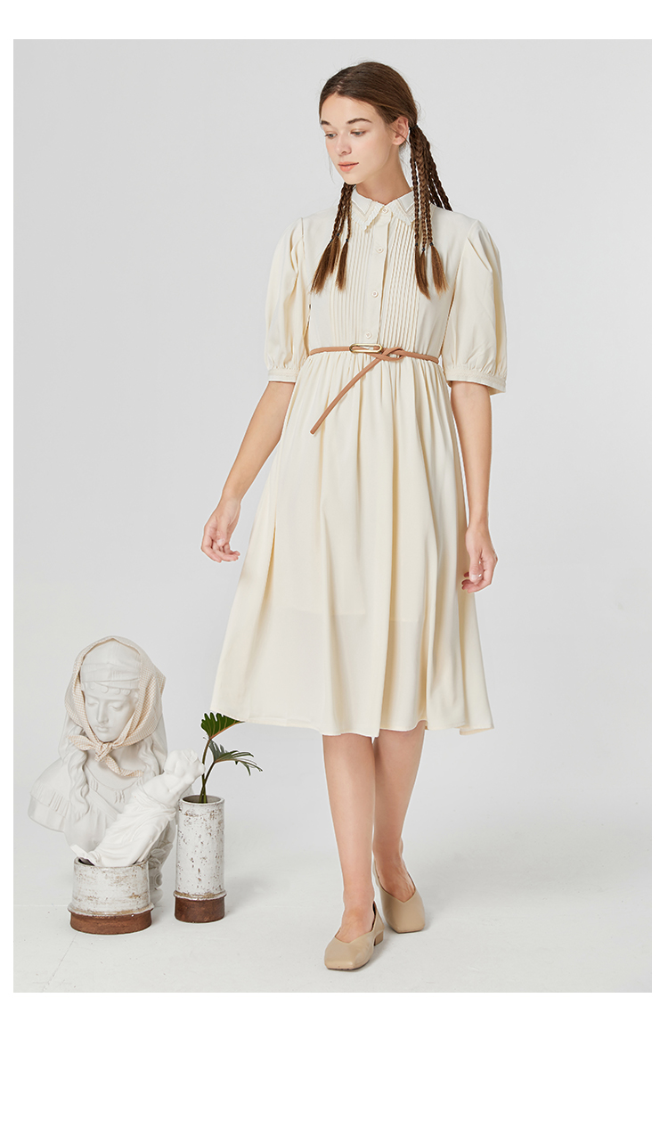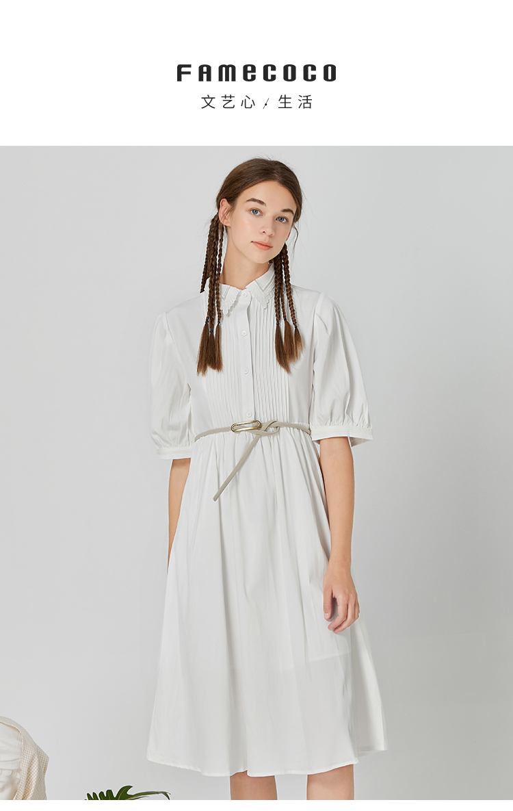 famecoco范可儿修身文艺裙子高级感女春秋翻领气质衬衫裙超仙F211FA119