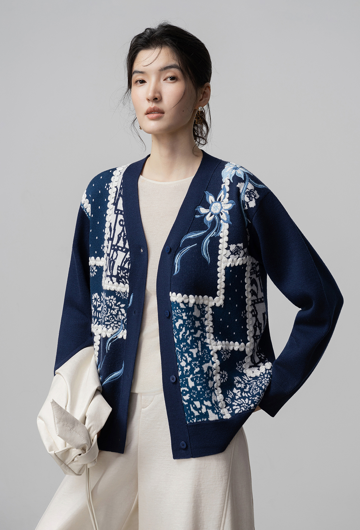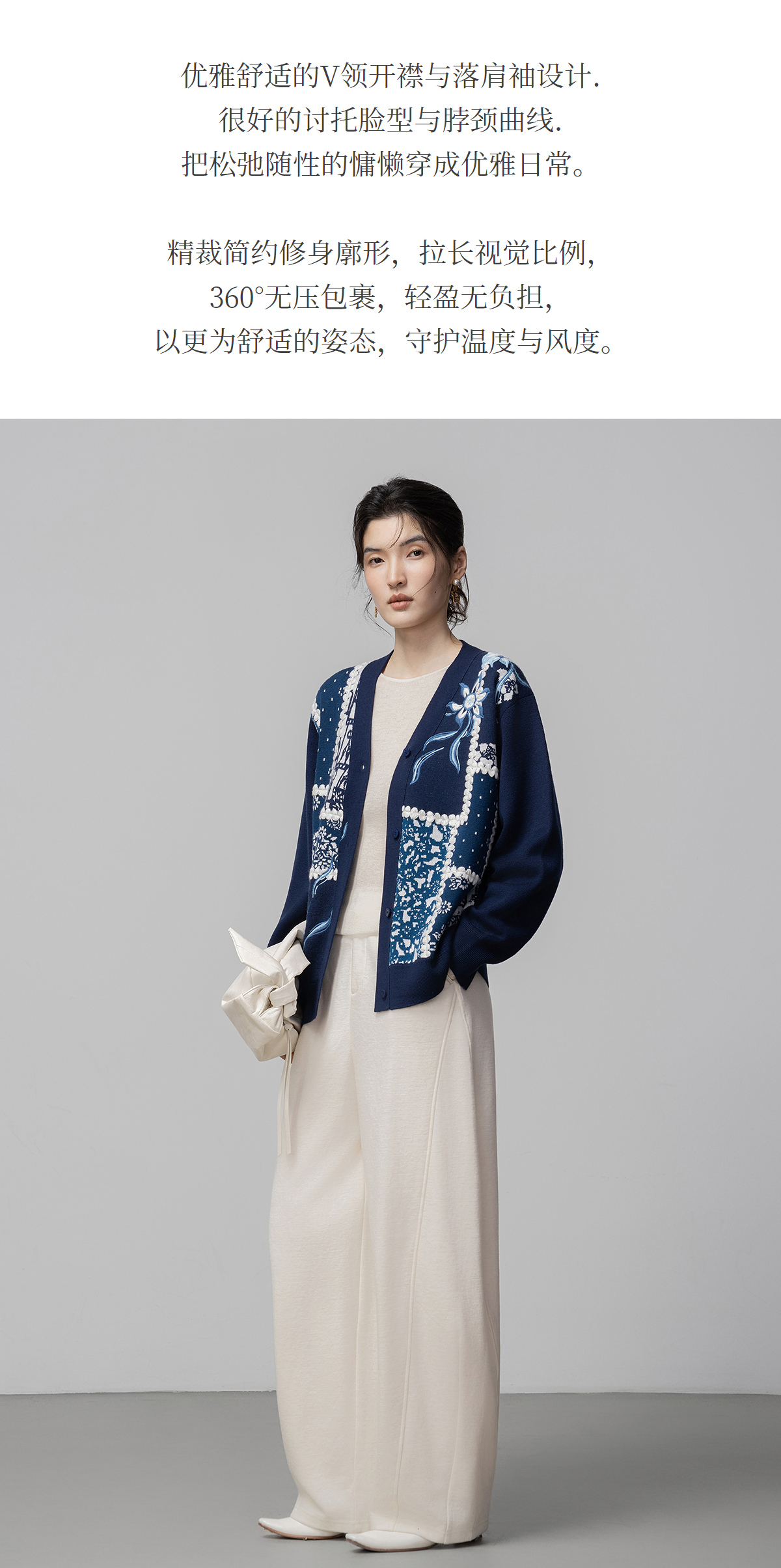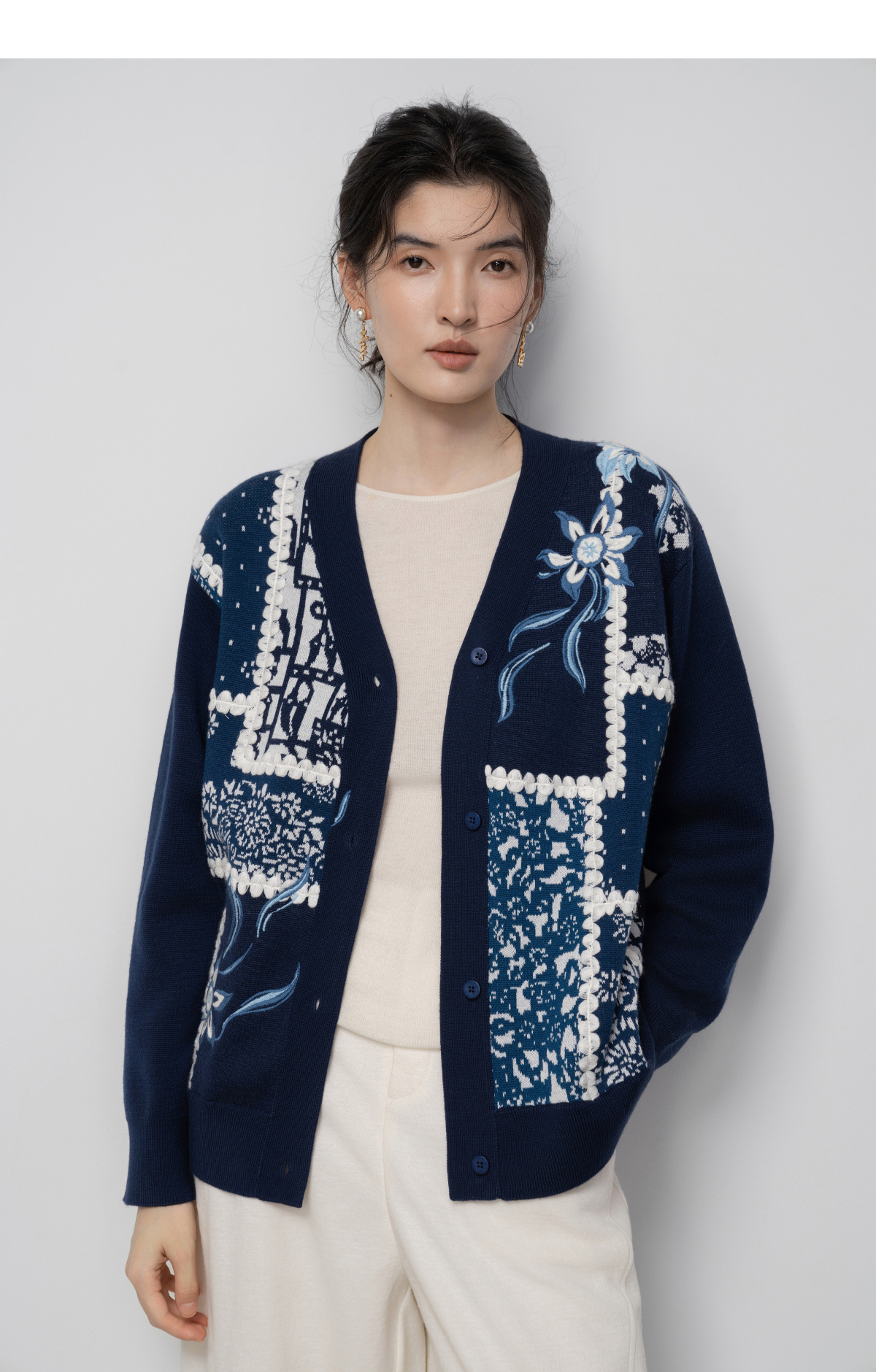 【林栖设计小店】绵羊毛混纺外套绣花新中式气质2025秋冬新款毛织开衫女T1954175