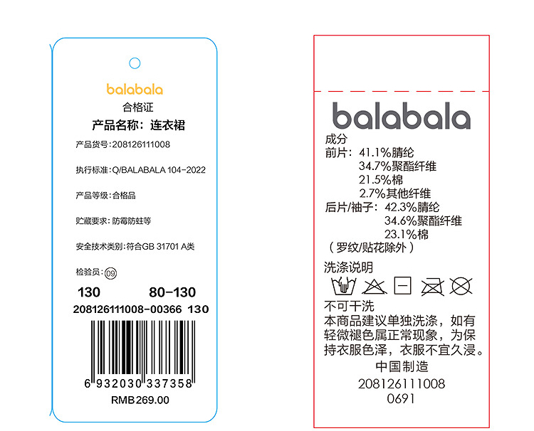 【balaOne】巴拉巴拉童装儿童连衣裙女童新中式旗袍裙春2025新款