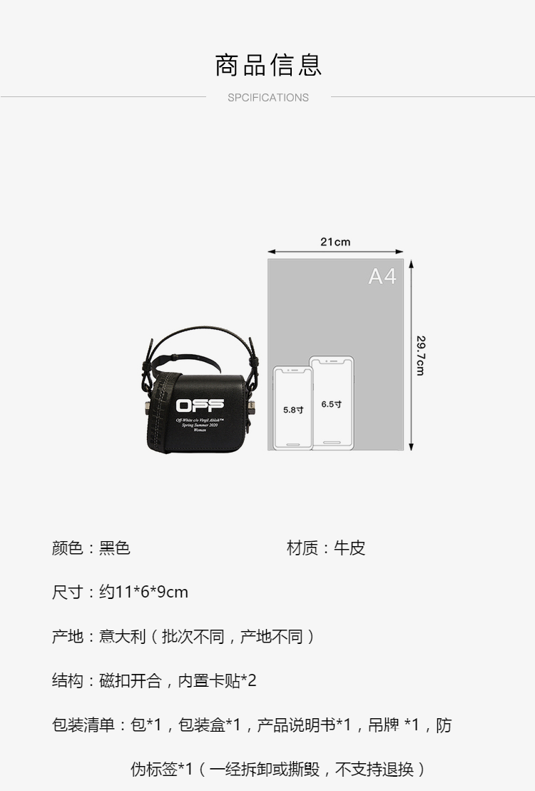 OFF WHITE 女士牛皮Logo图案印花腰包手提单肩包 OWNA087R20423073
