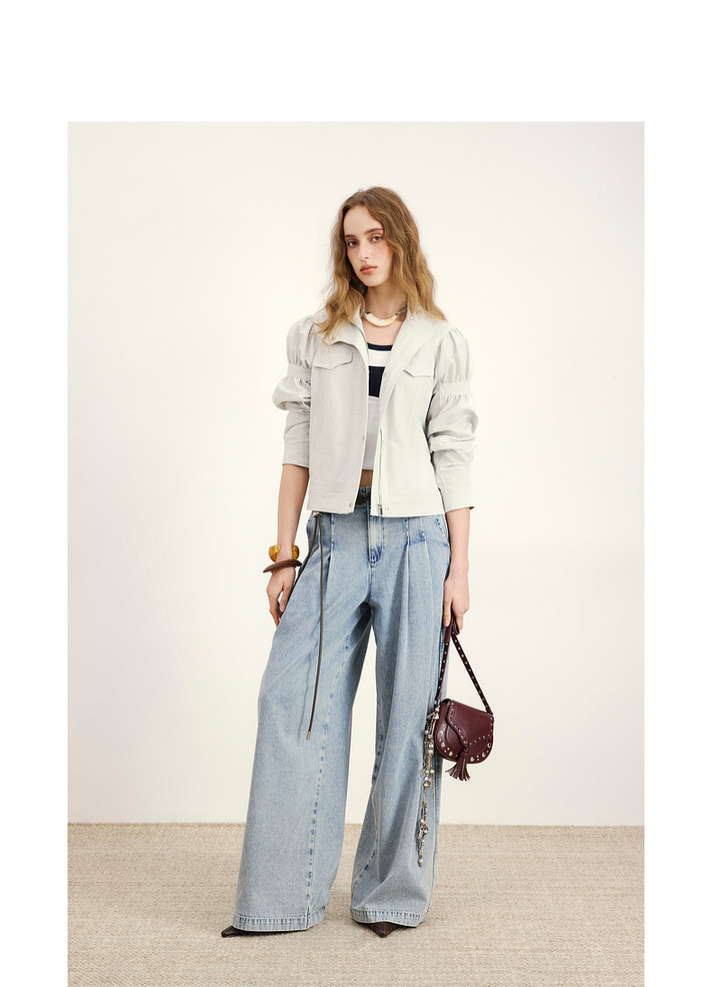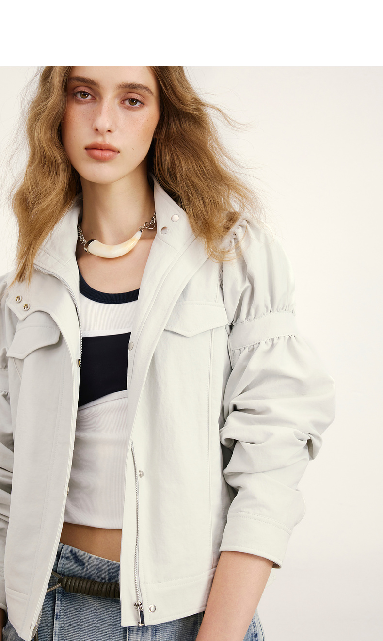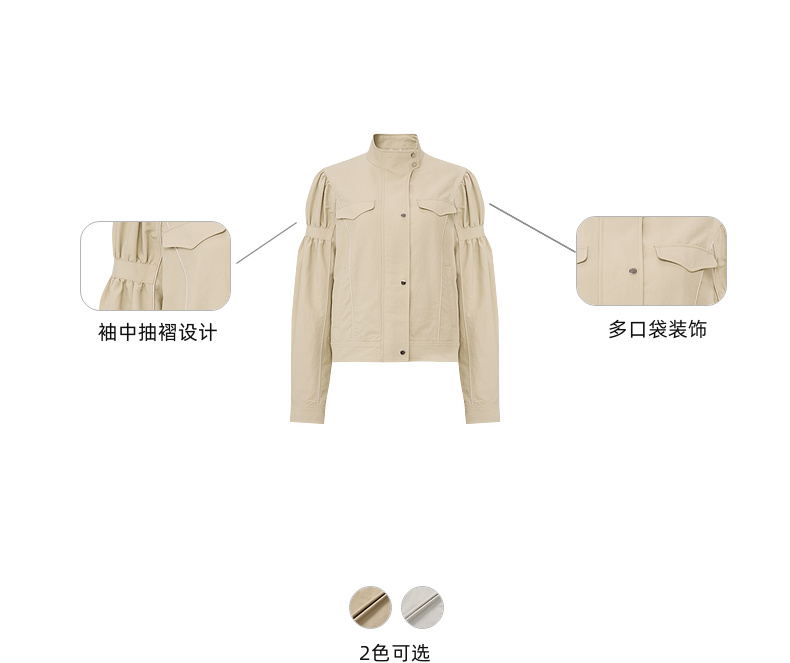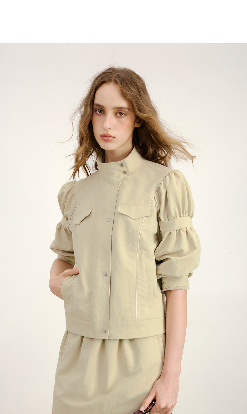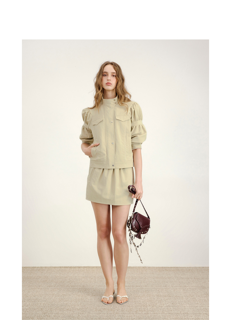 lost in echo2026年春夏新款时尚立领抽褶袖工装夹克外套A字短裙
