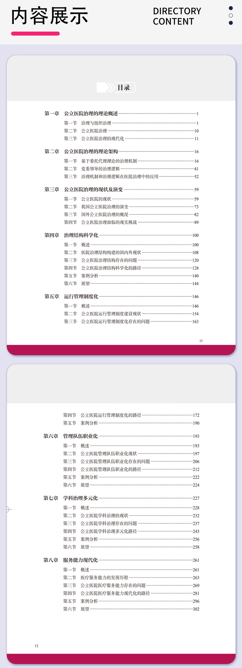 本书分为总论和分论部分,总论部分概述大型公立医院的内涵功能、现代医院管理的时代特征和核心要义;分论部分具体阐述大型公立医院的党建工作、医疗管理、药事管理、质量管理、临床教学、科研创新、学科建设、人才管理、护理管理、院感管理、服务管理、文化建设、品牌建设、经济运营、信息管理、安全管理、互联网医院建设、医联体建设、国际交流合作等内容。每一章最后部分将探讨公立医院内涵管理面临的挑战及未来改革发展趋势,并展示医院管理相关实践案例,从理论到实践全方位、多角度、多层次总结经验、探索规律、追踪前沿和展望未来。
