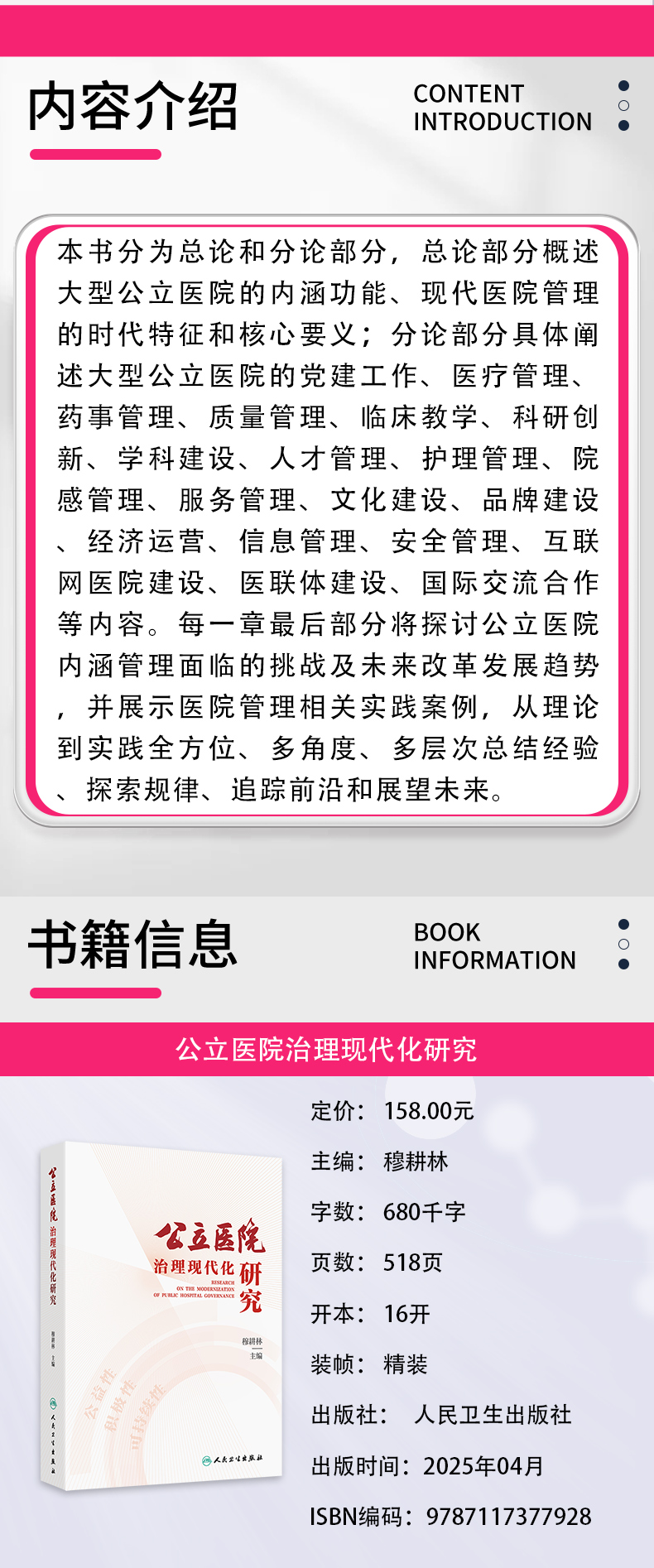 公立医院治理现代化研究 穆耕林 内涵功能现代医院管理的时代特征和核心要义 阐述大型公立医院的党建工作医疗管理等人民卫生出版社