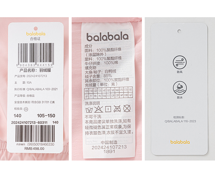 巴拉巴拉儿童羽绒服宝宝男童女童童装温暖短款户外防风防泼水冬季