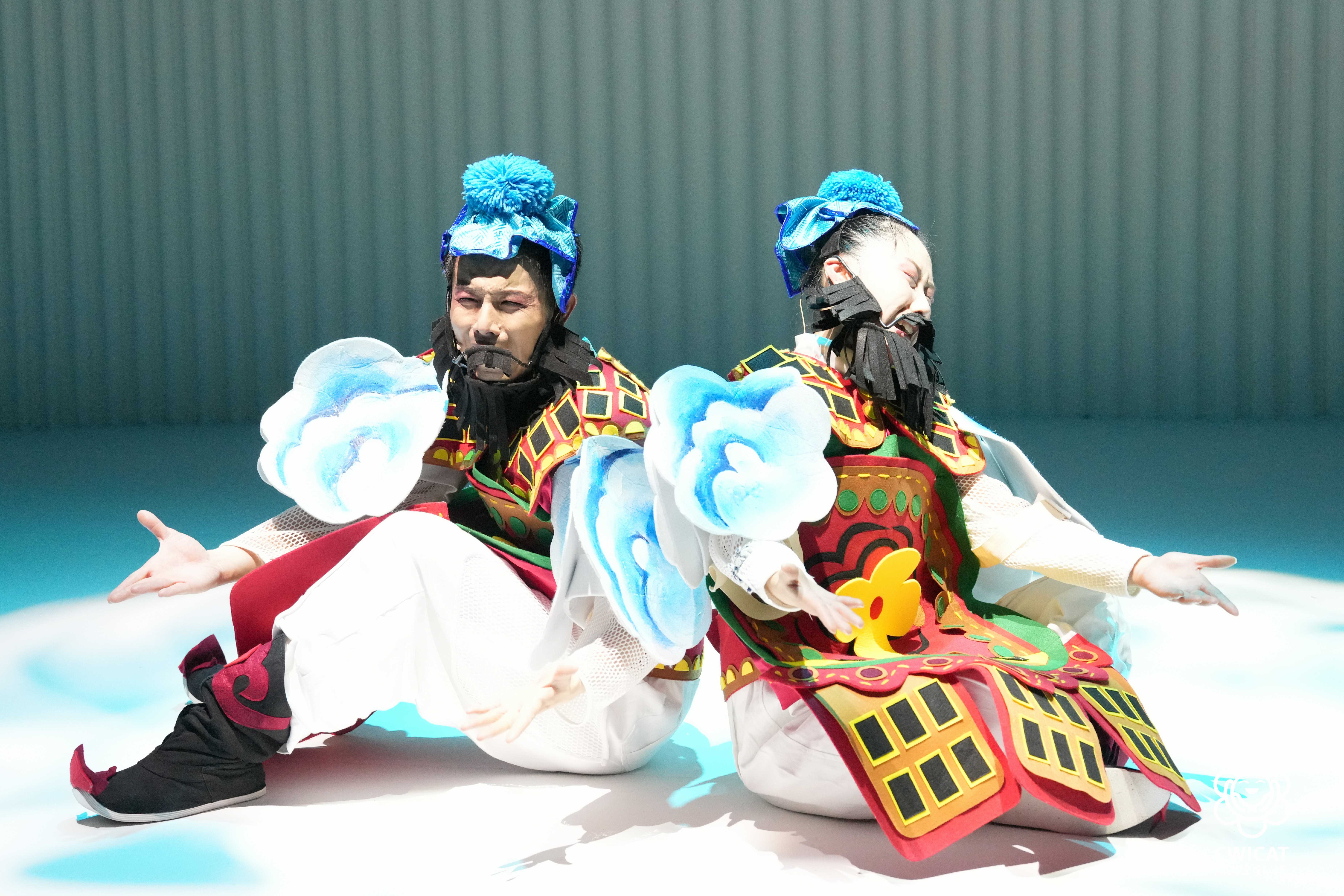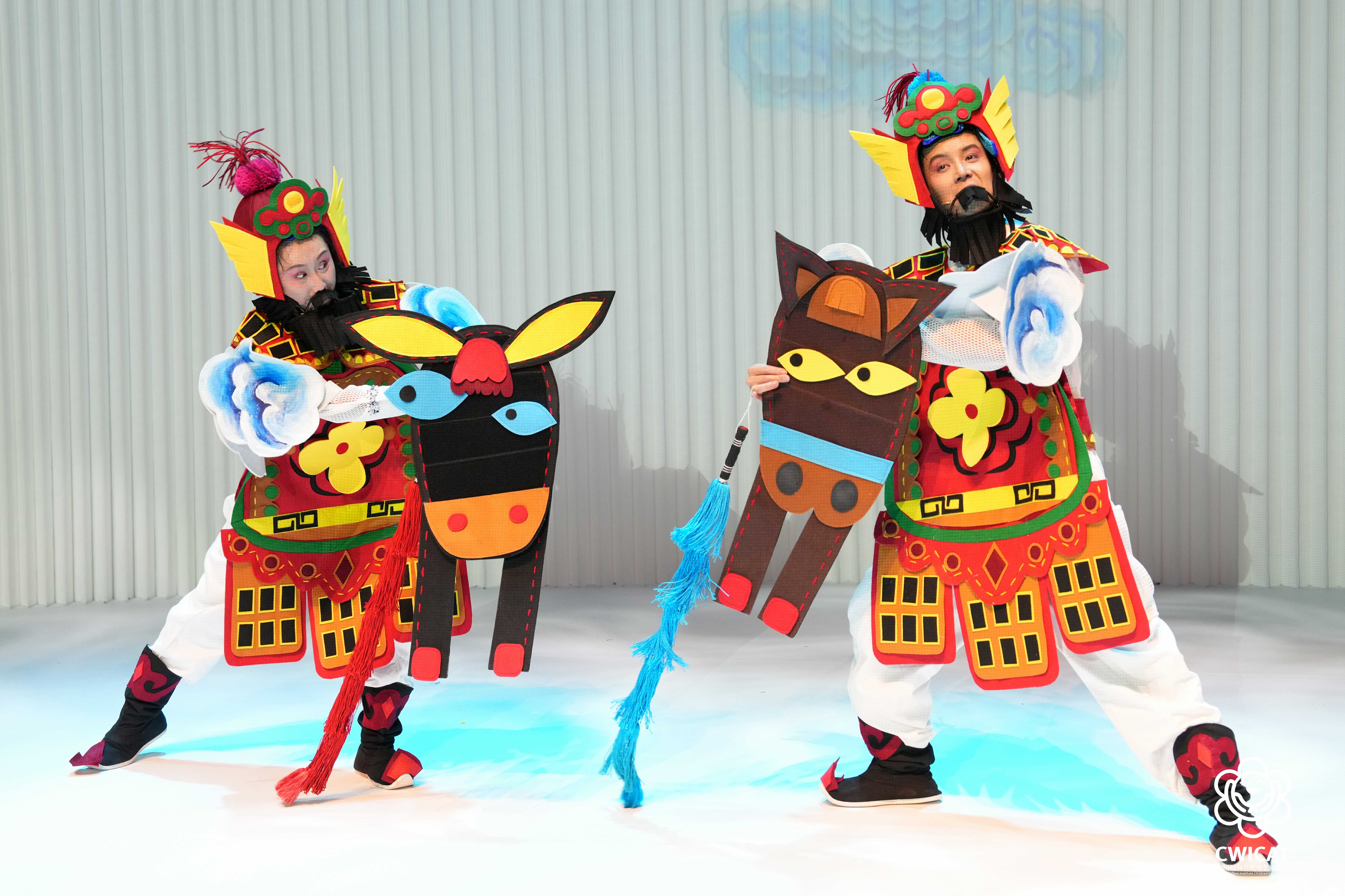 我们的故事改编自经典绘本《哼将军和哈将军》。书中,哼将军和哈将军长得一模一样,甚至分不出彼此。于是两位将军为了找出各自的不同,踏上了寻找自我的旅程。他们问了很多人,甚至拜访了各路神仙,最后从最了解自己的妈妈那里获得领悟。原来他们相似外表下的是截然不同的独特性格。一个性格粗犷,一个心思细腻;一个充满爱心,一个正义凛然;一个喜欢吃烧饼,一个更爱鸡蛋饼……其实,孩子们也是这样的,每一个都有不同的个性和独特之处,只要你敢于发现它,也许就能用小小的自己来点亮大大的世界!我们为观众打造了一个纸艺环绕、色彩丰富的沉浸式舞台空间,浓厚的中国元素,现代的视觉表达。三位演员用丰富的表情、夸张的肢体、精炼的语言,结合戏曲程式化的表演,来趣味演绎这个风格化极强的传说故事。