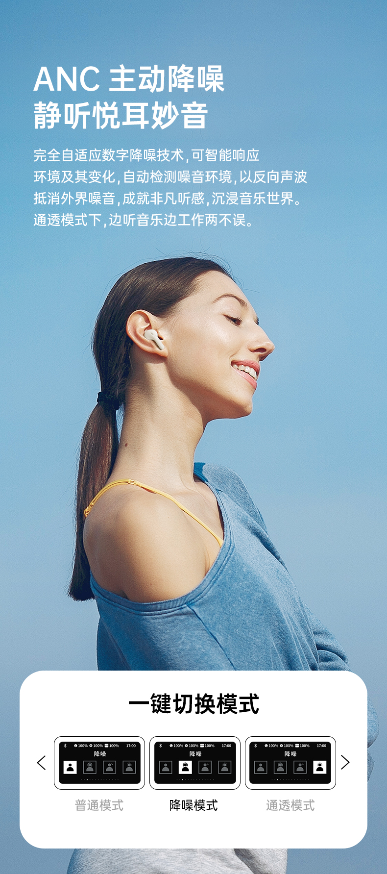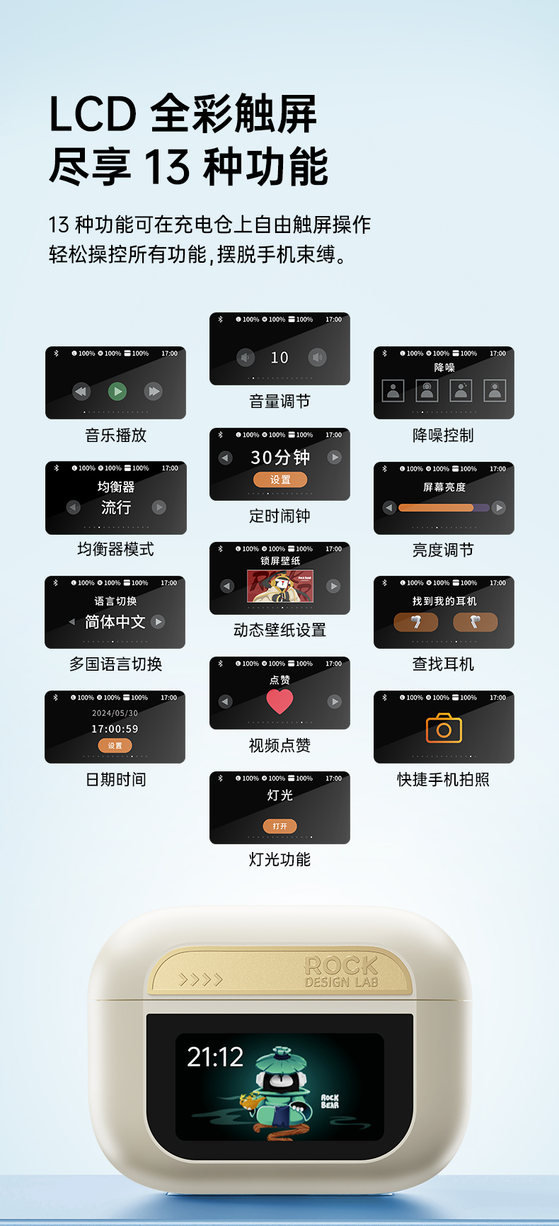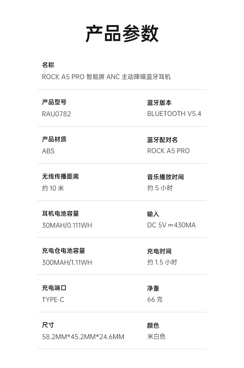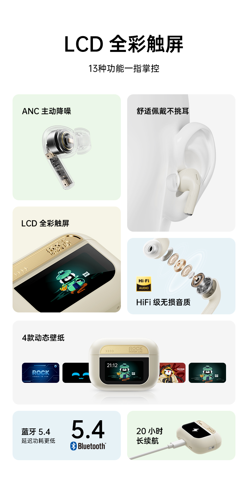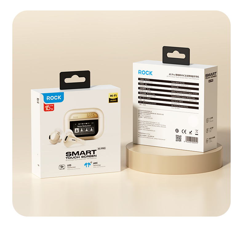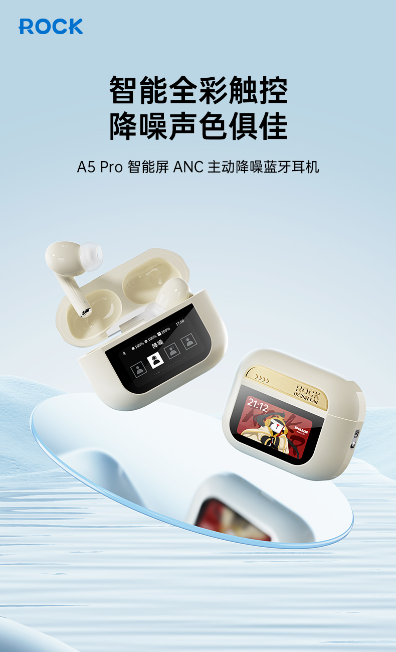 ROCK A5 Pro 智能屏ANC主动降噪蓝牙耳机