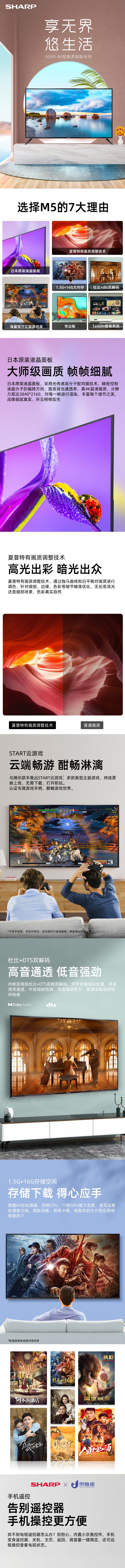 夏普 (13426) 60英寸 4K超高清智能网络WIFI液晶平板电视 4T-M60M5DA 4K杜比音效1.5+16G