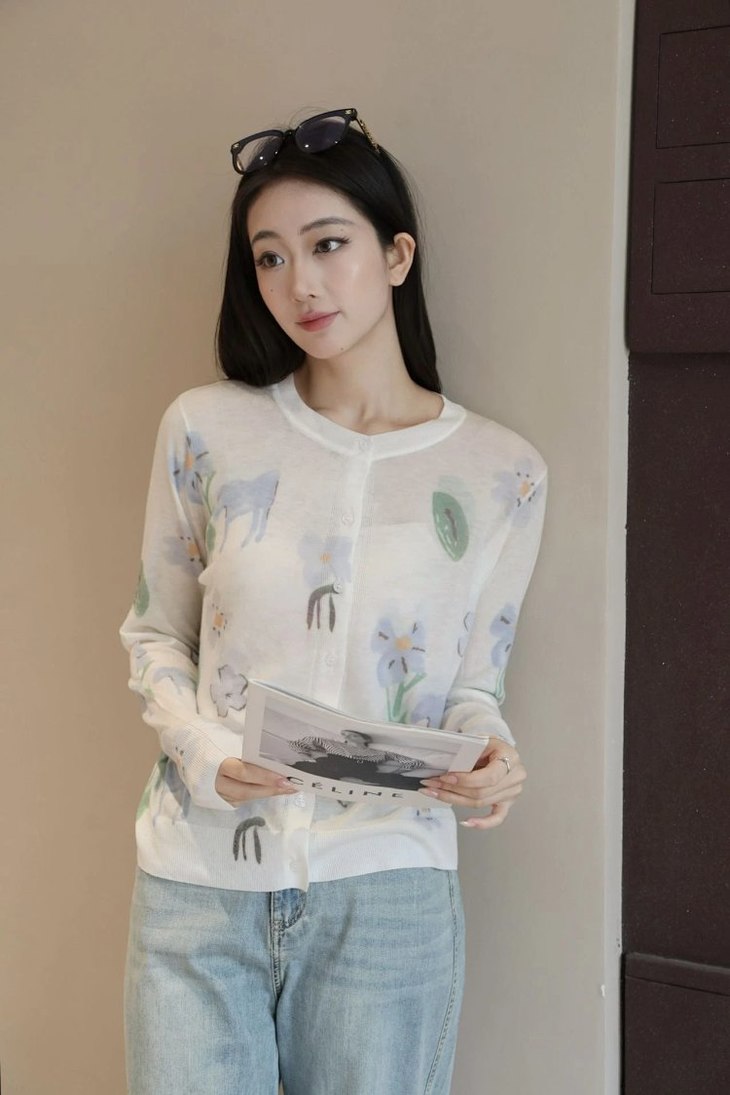 【天丝羊毛花朵开衫】把春日的写意花卉,织进天丝与羊毛的温柔肌理里,上身舒适无负担亲肤细腻WD