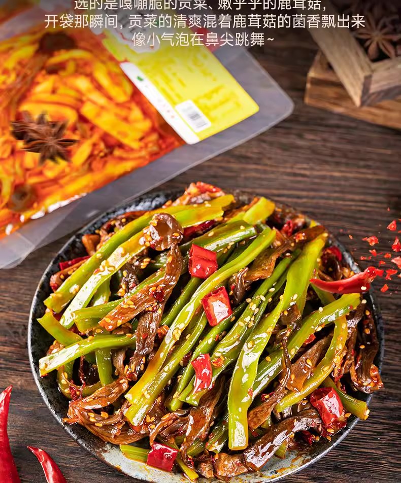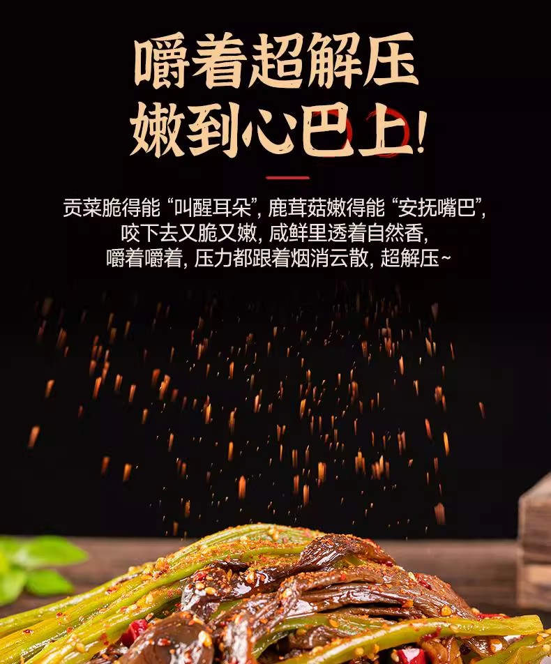 【地道湖湘味❗️贡菜鹿茸菇】甄选鲜菇配料「释放鲜菇醇香」香辣脆爽超下饭,一口脆到冒泡,开袋即食下饭菜香辣爽脆适合追剧解馋L-d