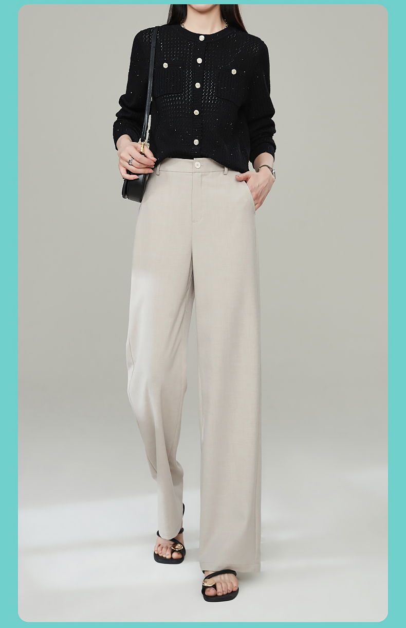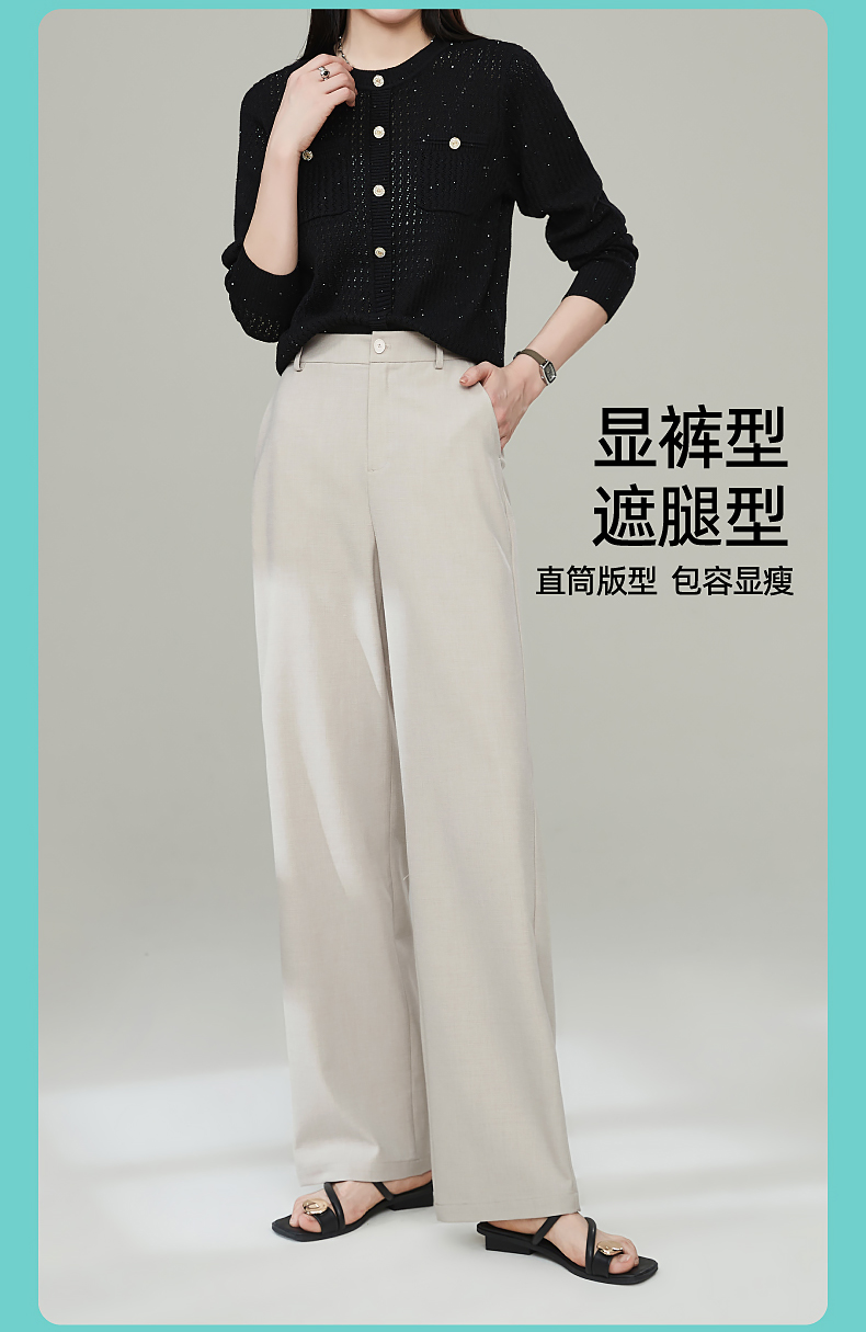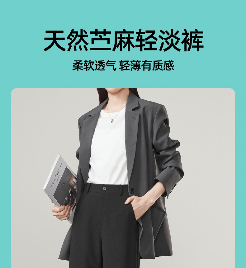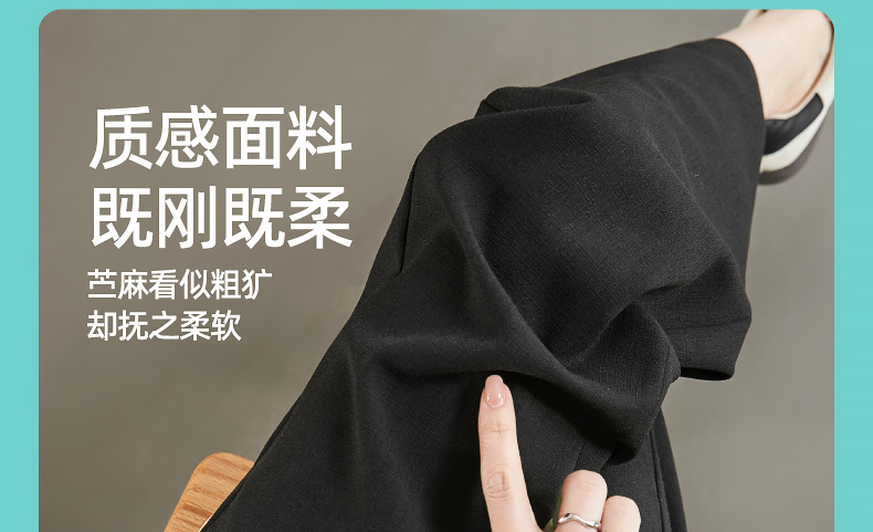 【天然苎麻轻淡裤】逸阳秋肌理感直筒高腰垂感休闲裤子5789
