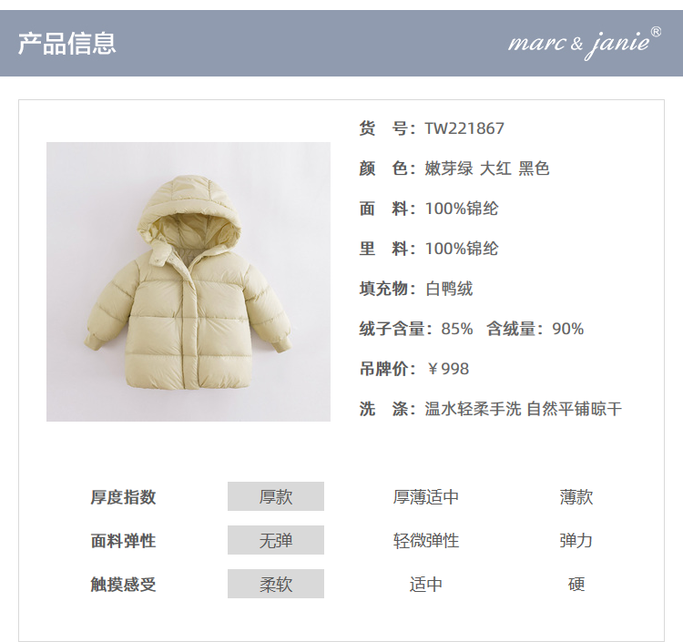 【三防石墨烯蓄热】马克珍妮冬装女童羽绒服 儿童羽绒服221867