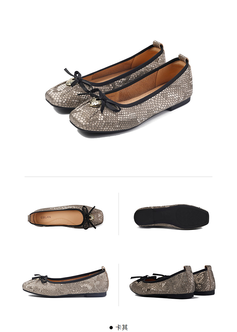 2楼伊伴2025年秋季动物纹鞋面蛇纹图案褶皱设计便鞋单鞋B25461701