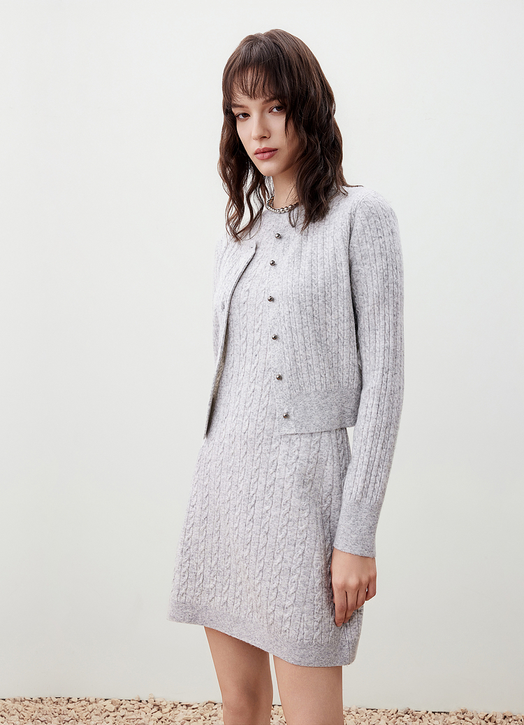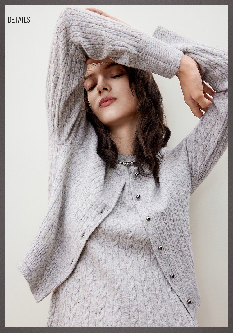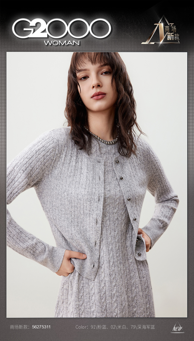 G2000女装FW25【西班牙插画师联名款】【绵羊毛混纺/商场新款】柔软舒适麻花纹长袖针织开衫56275311
