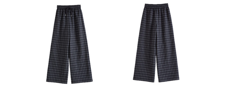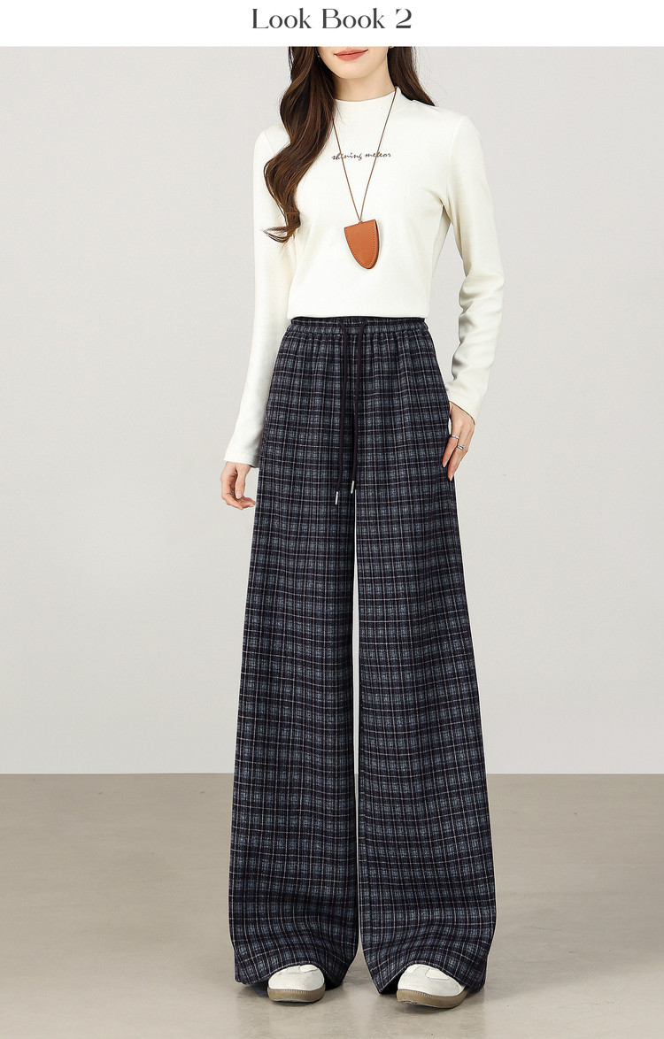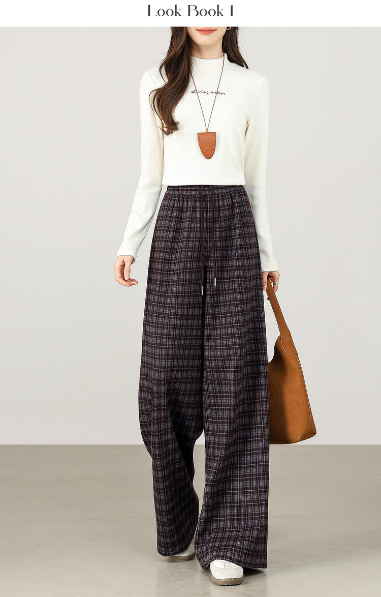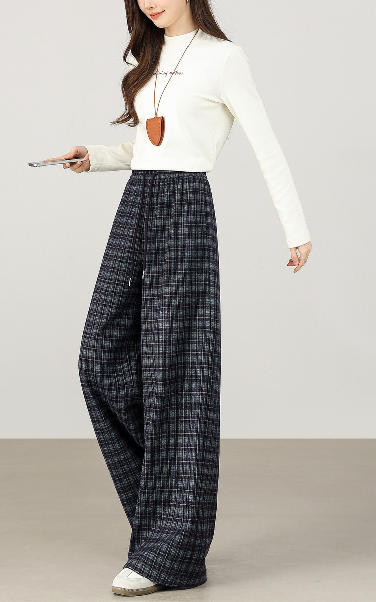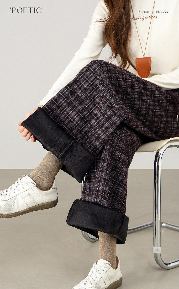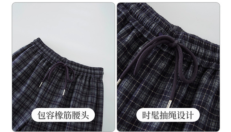 【12/31新品】熙世界美式复古格纹阔腿裤加绒加厚女秋冬慵懒休闲直筒毛呢长裤子