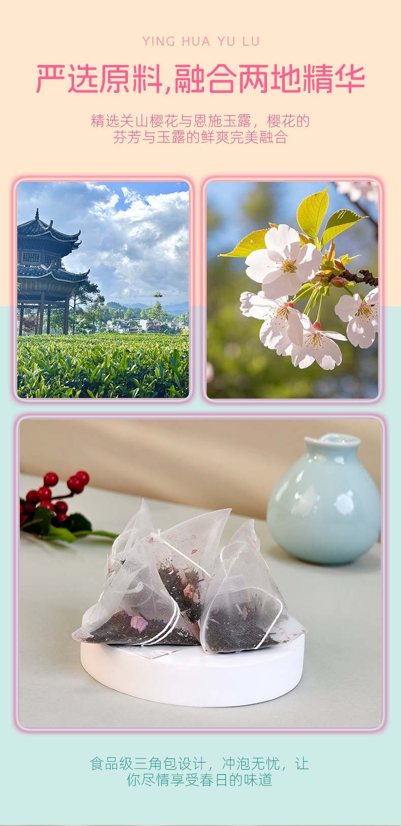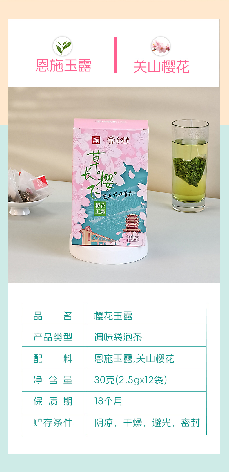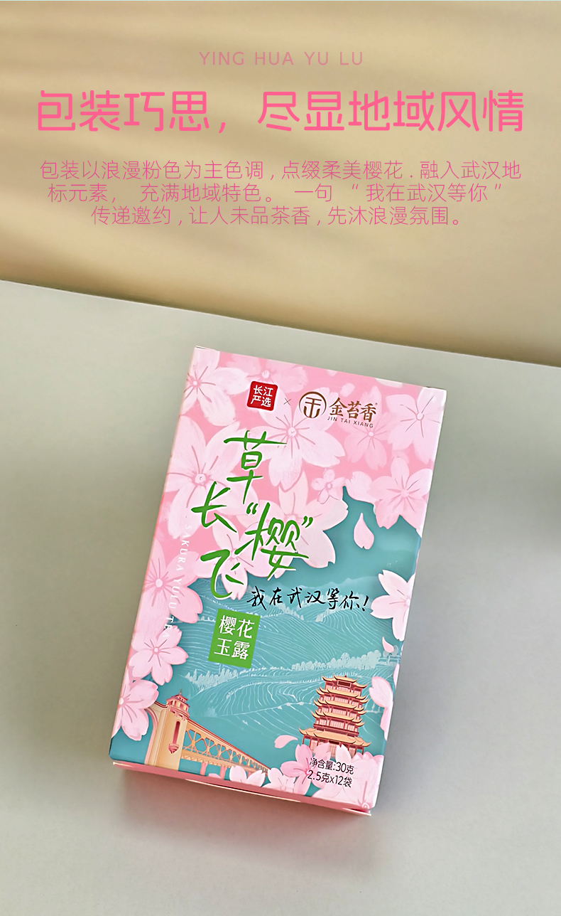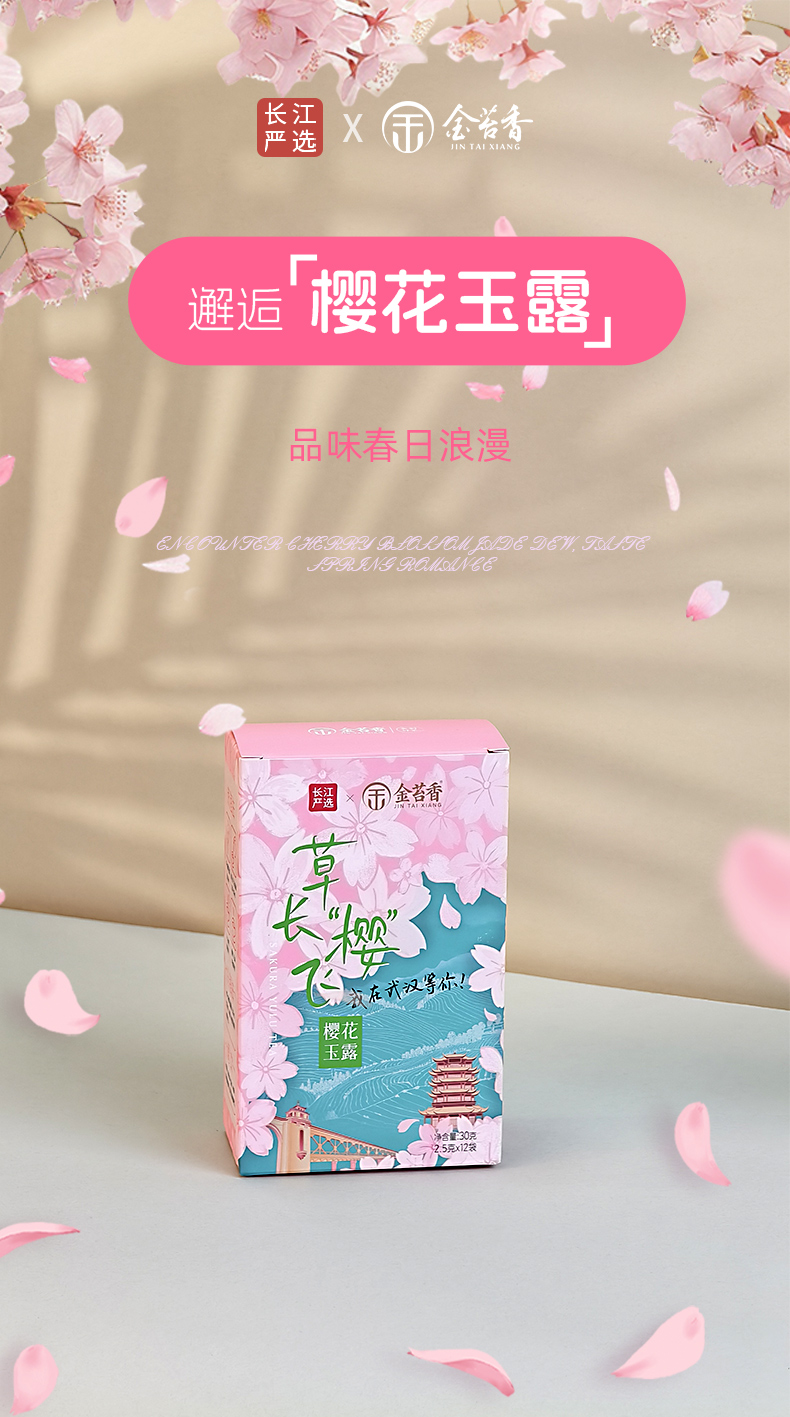 【千年蒸青工艺融合武汉樱花香气】(春)长江严选联名款金苔香草长“樱”飞·樱花玉露30g(2.5g*12袋)
