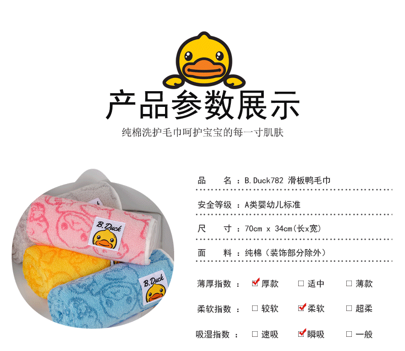 B.Duck小黄鸭朋友鸭毛巾70*34cm 783
