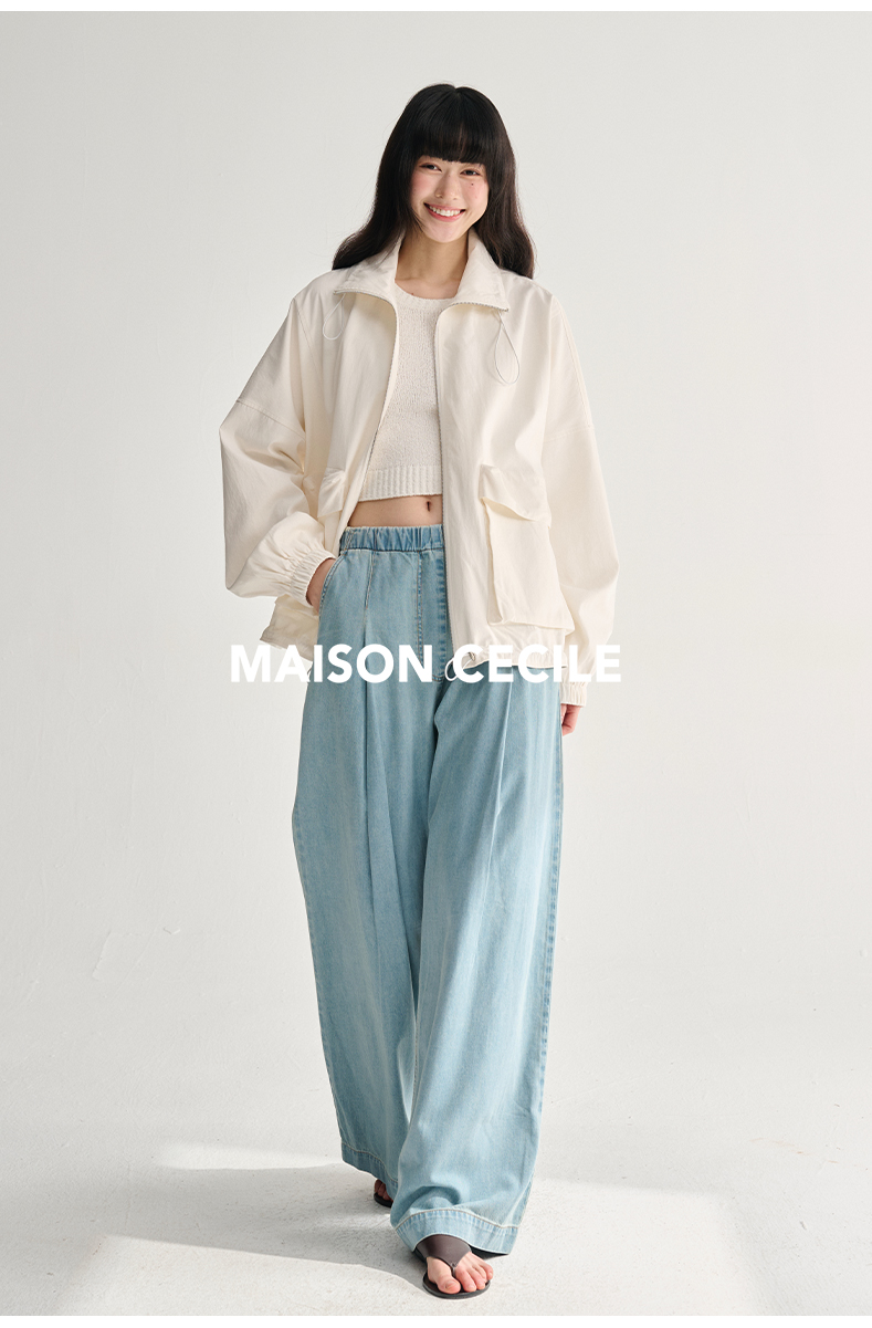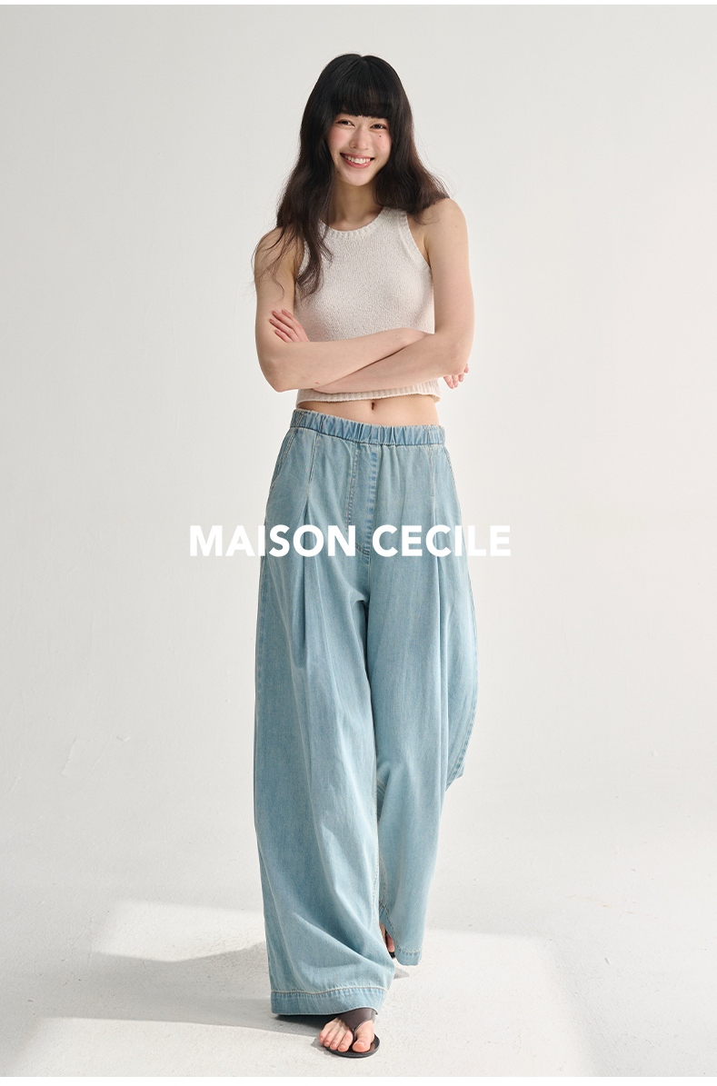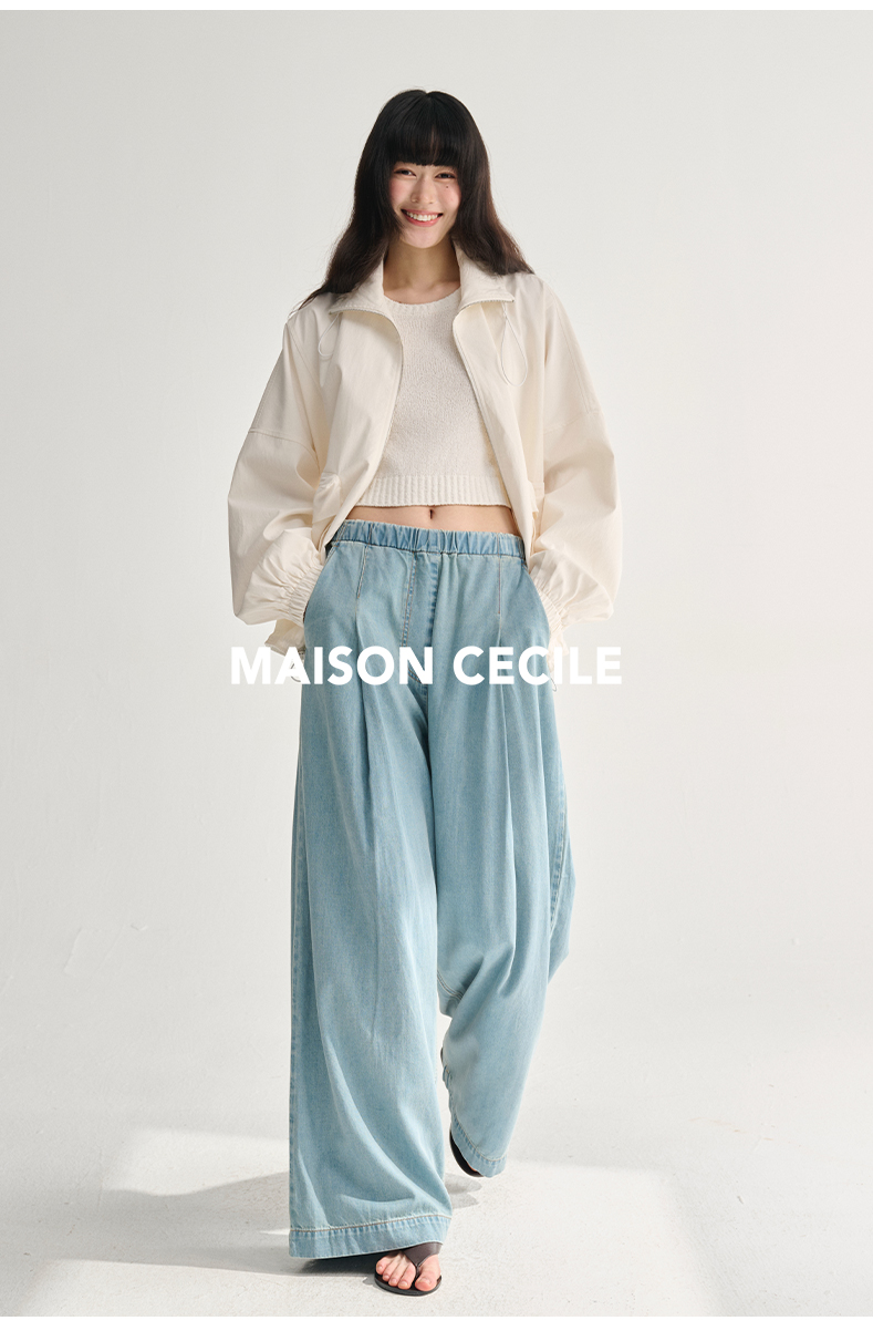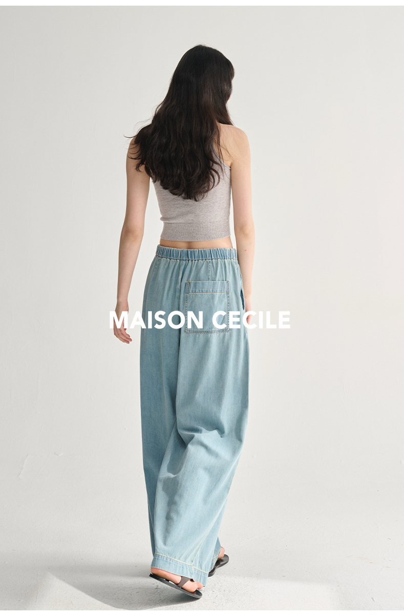 MAISON CECILE 夏日感松弛飘荡松紧腰直筒做旧牛仔裤