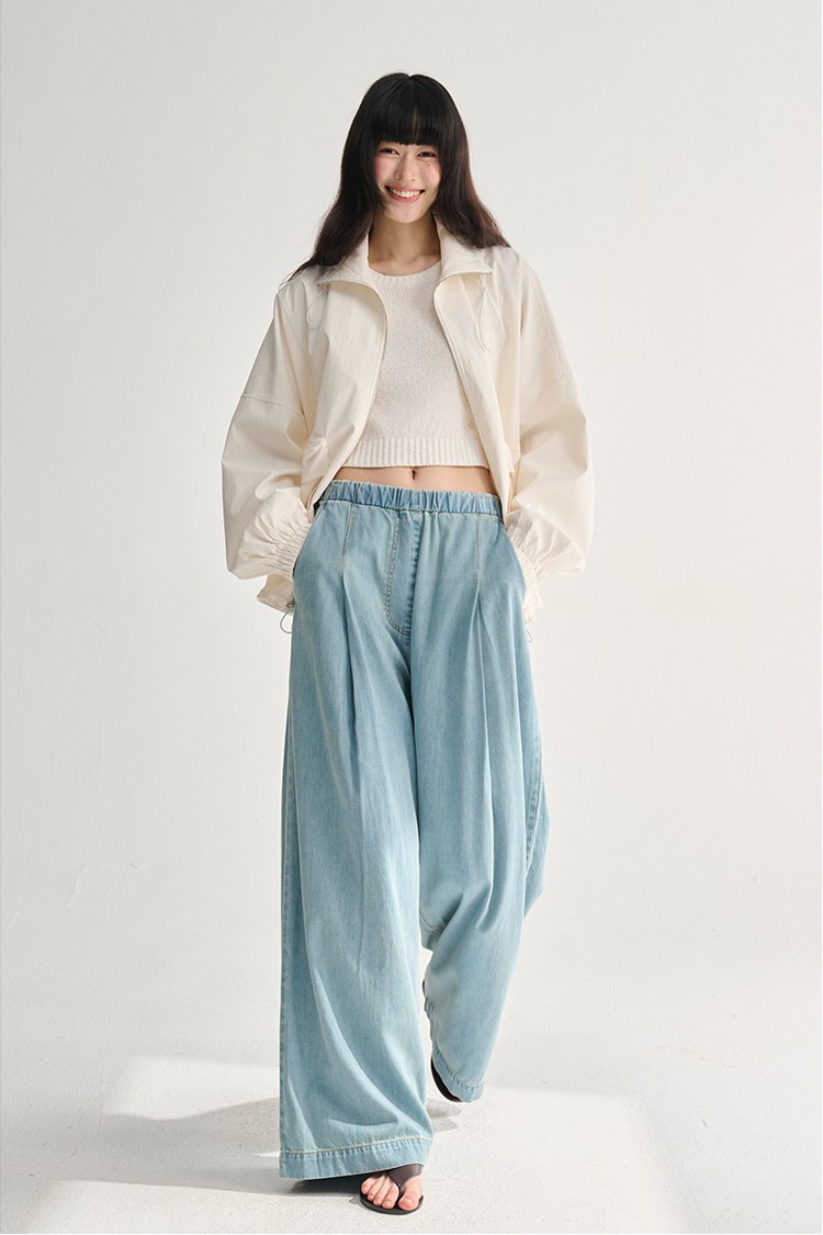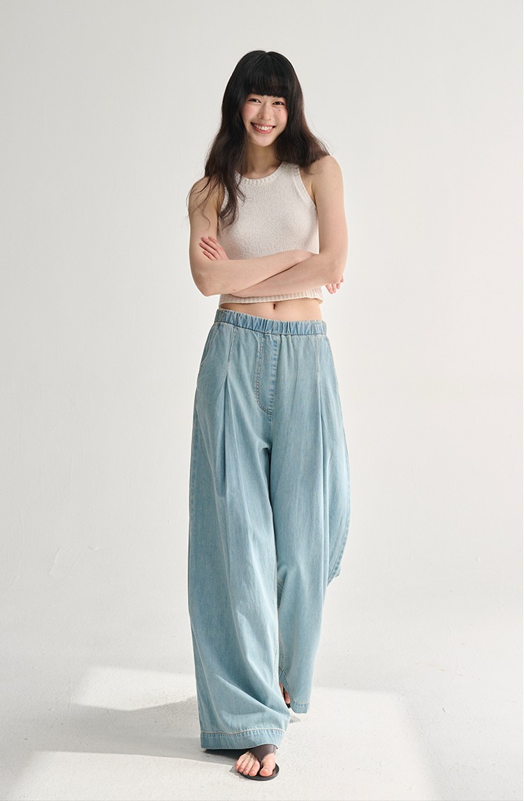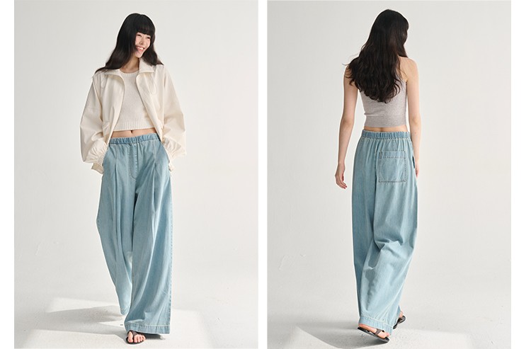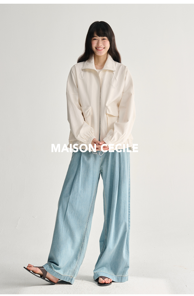 MAISON CECILE 夏日感松弛飘荡松紧腰直筒做旧牛仔裤