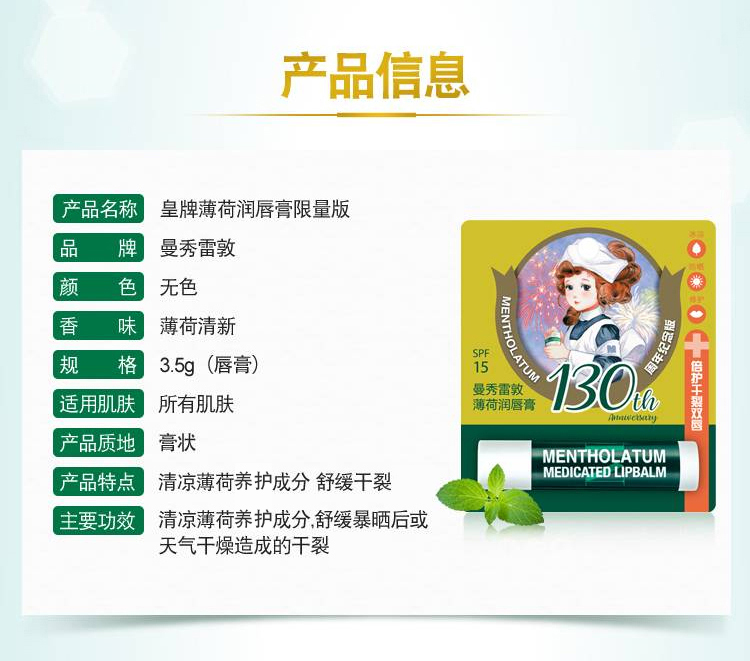 曼秀雷敦 薄荷润唇膏3.5g(养护防干裂 滋润舒缓 持久保湿)新老包装随机发货
