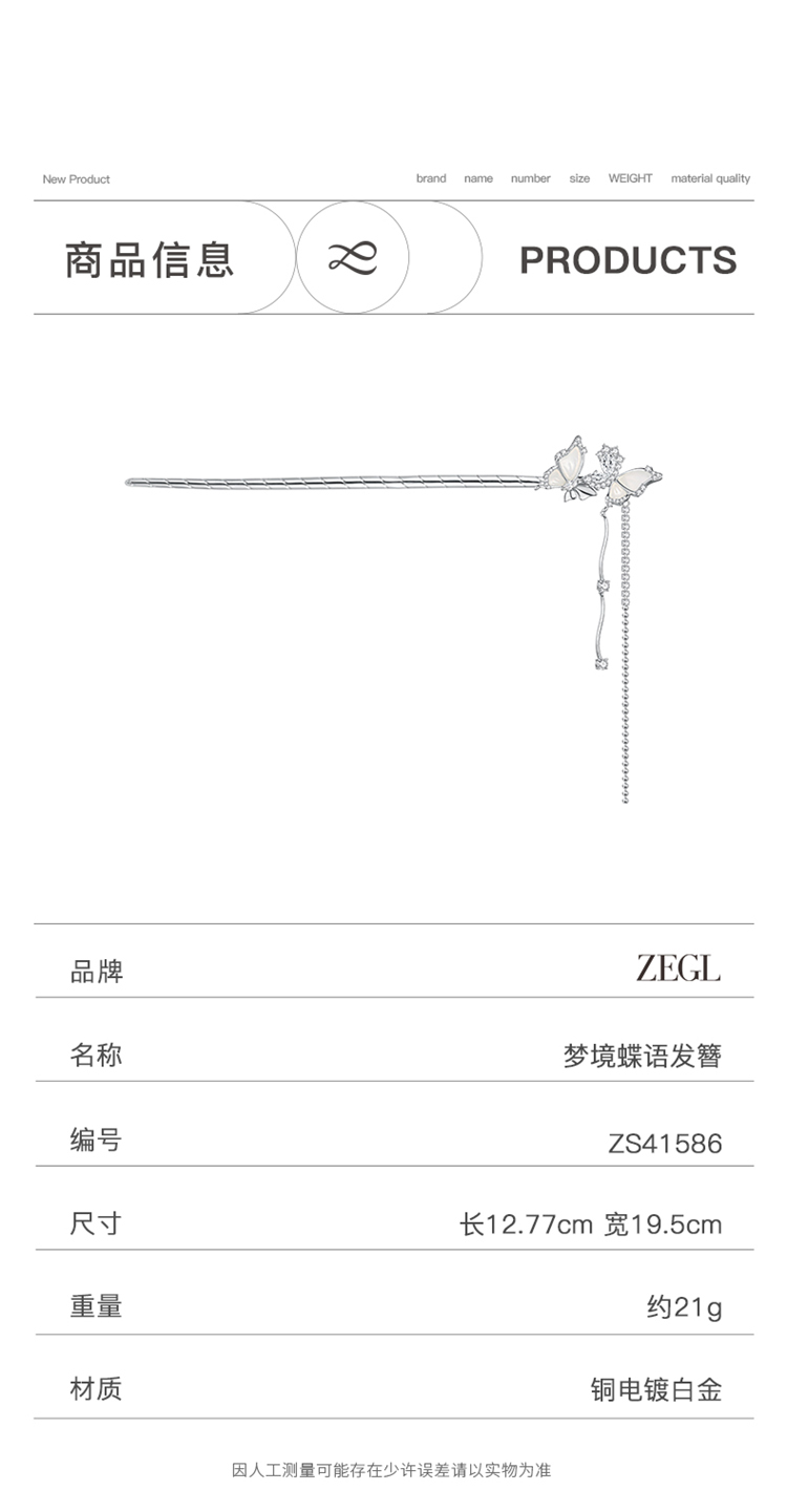 ZEGL设计师蝶语系列蝴蝶流苏发簪女高级感现代小众新中式汉服头饰