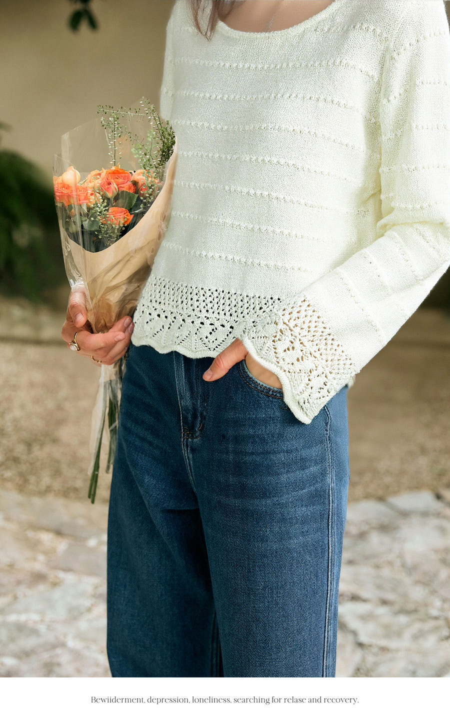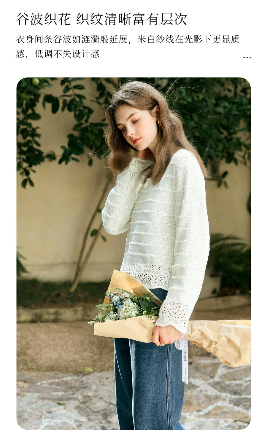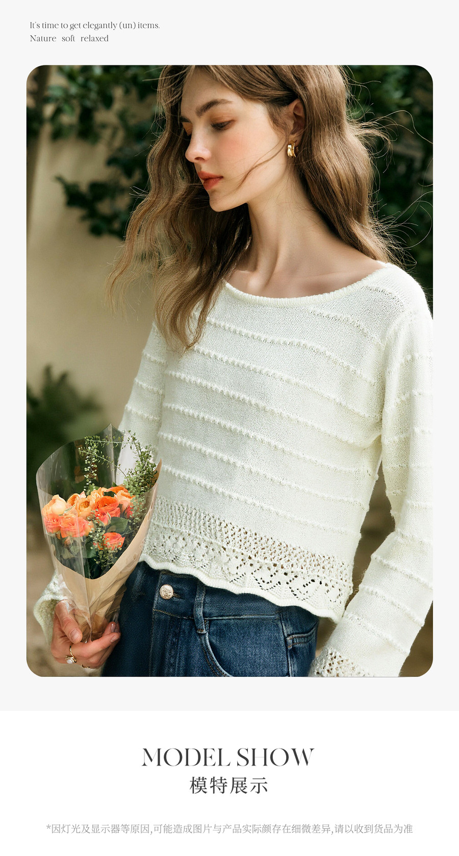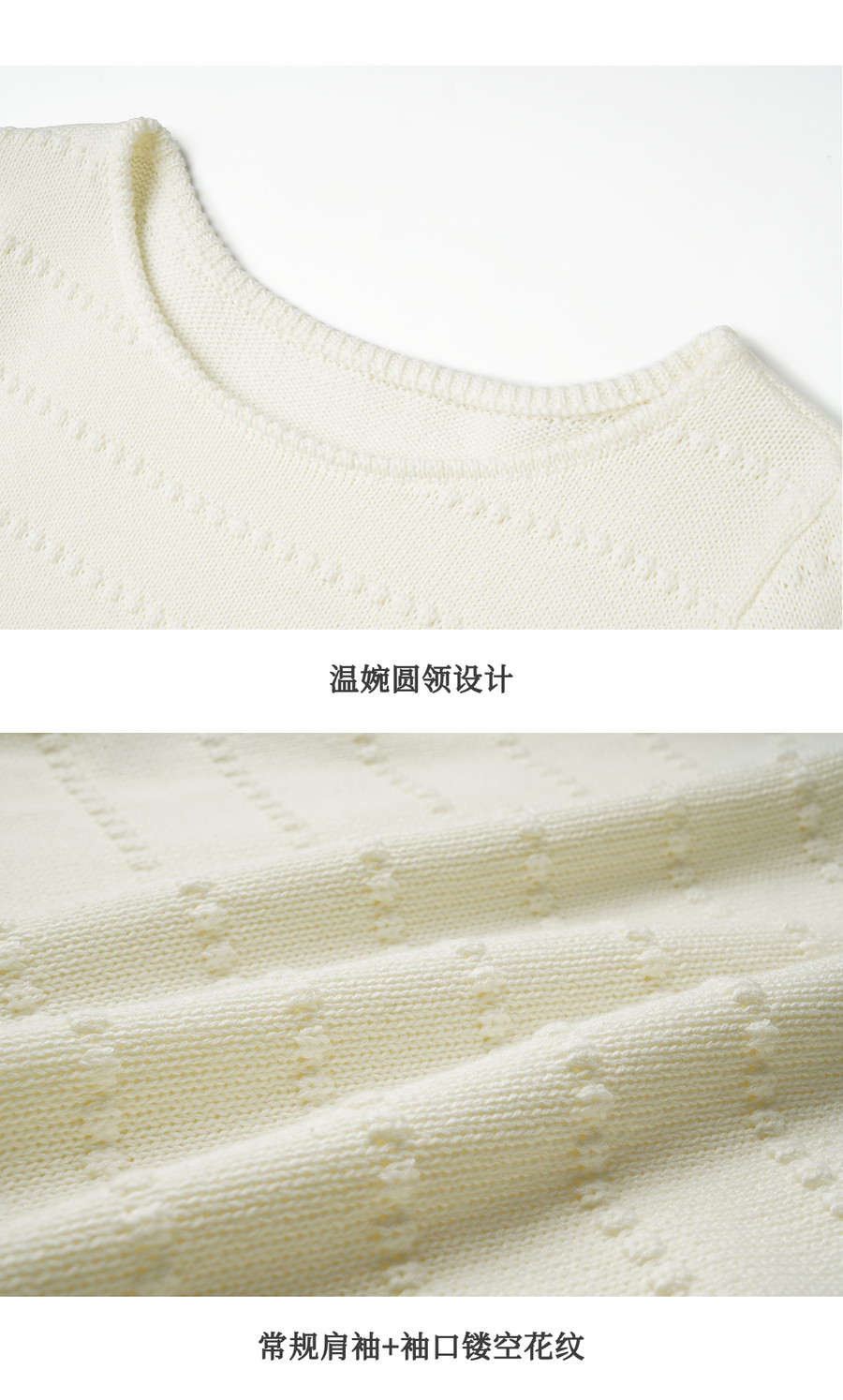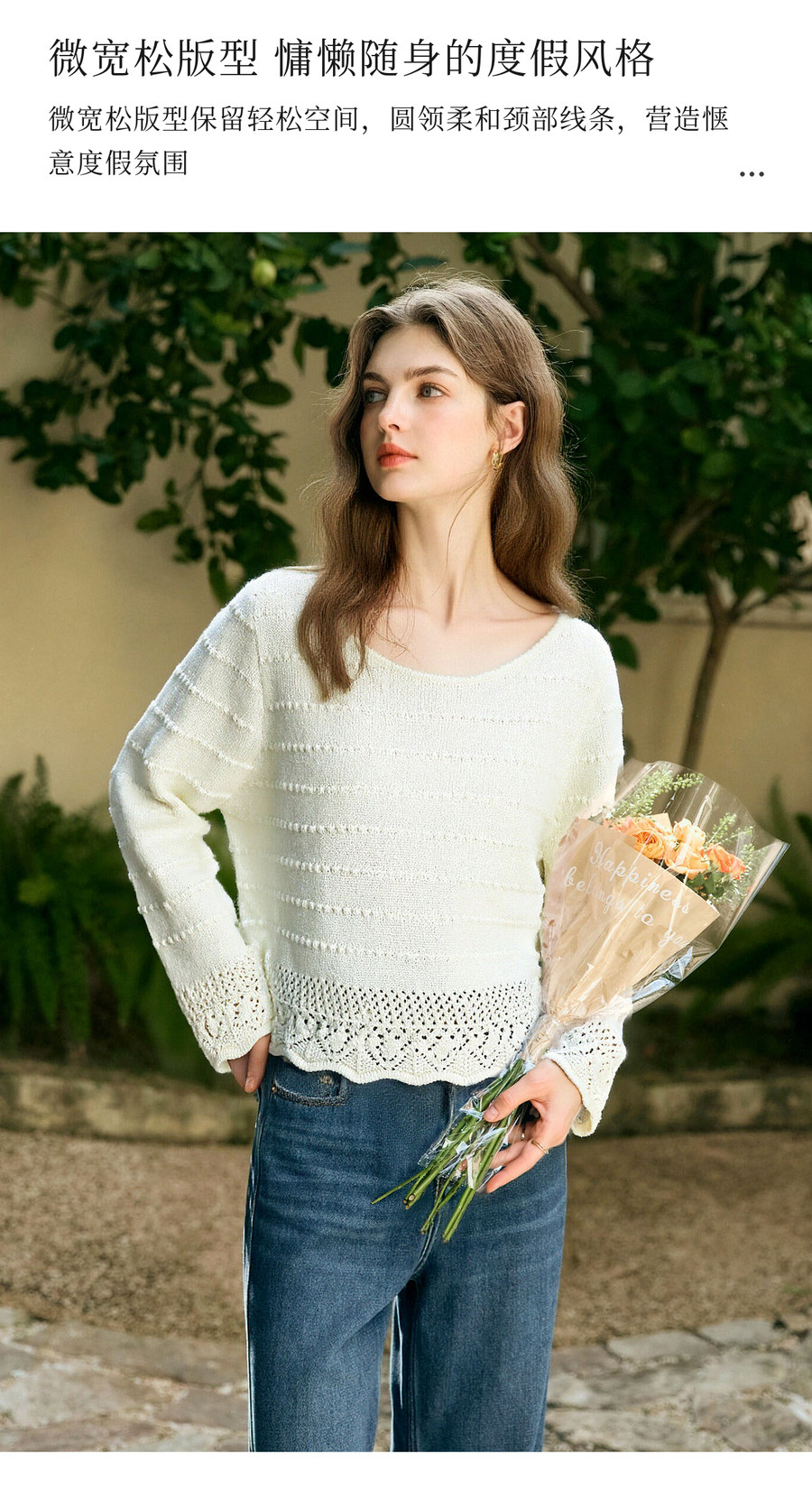 OLrain欧芮儿法式度假风镂空圆领针织衫2026新款女春季长袖套头衫