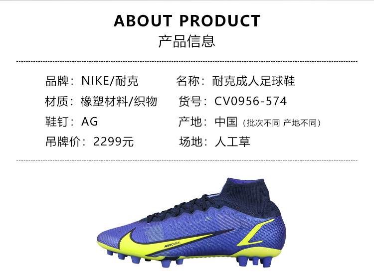 SFS耐克正品刺客14 Elite AG高端高帮短钉人草足球鞋男CV0956-574