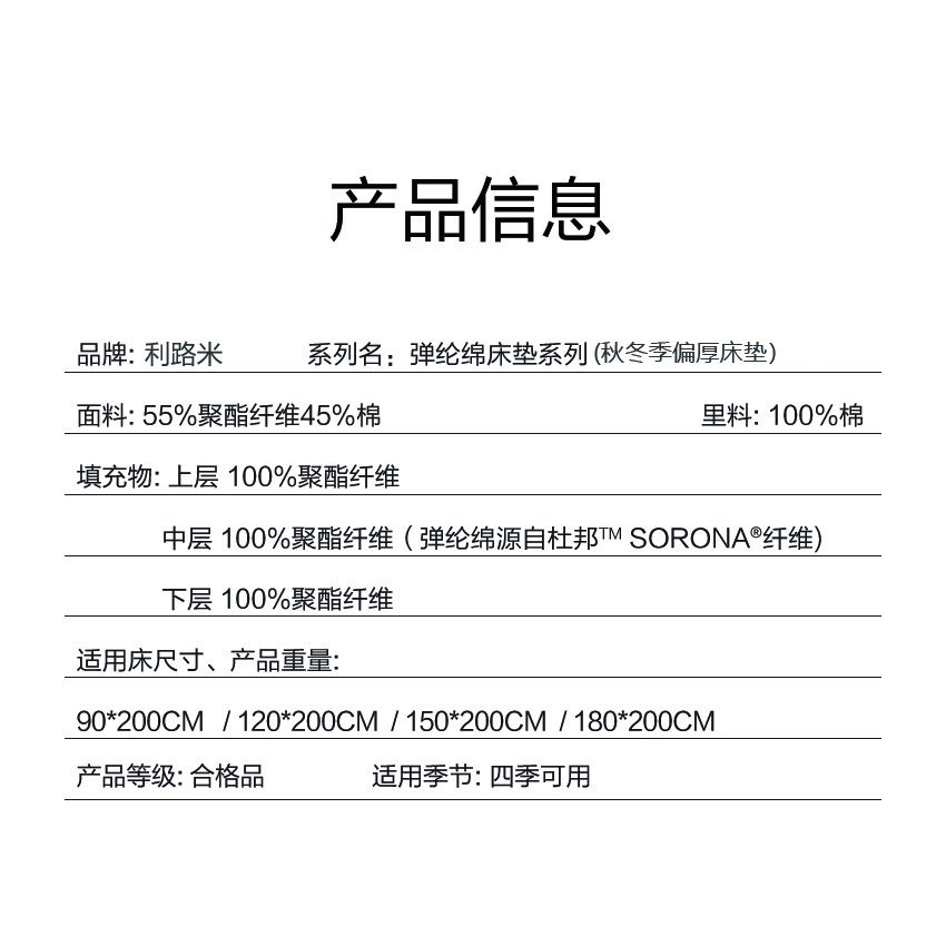 利路米杜邦弹纶棉减压舒适床垫柔软型