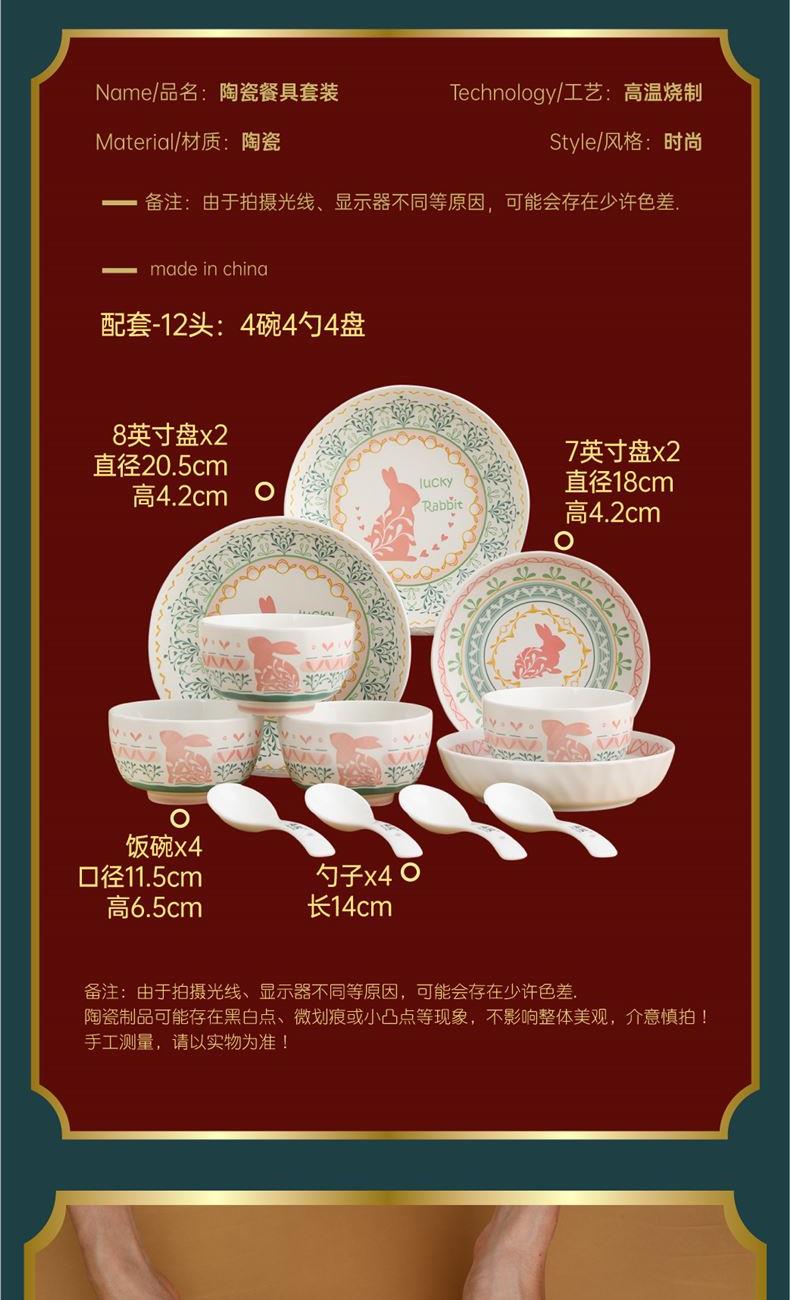 【分仓直发包邮】尚陵宫玉兔餐具套装12头 SL-GYT0701-1