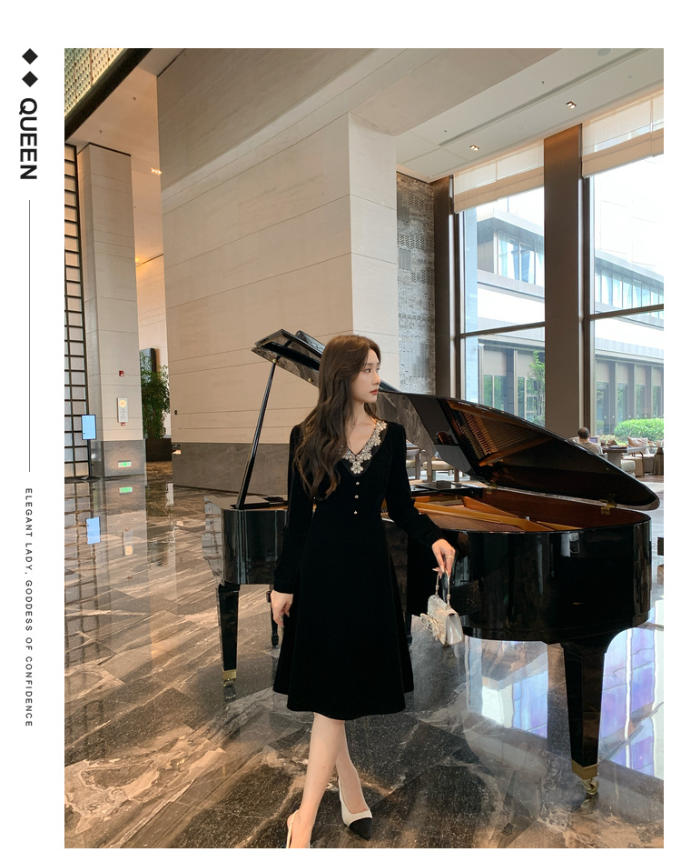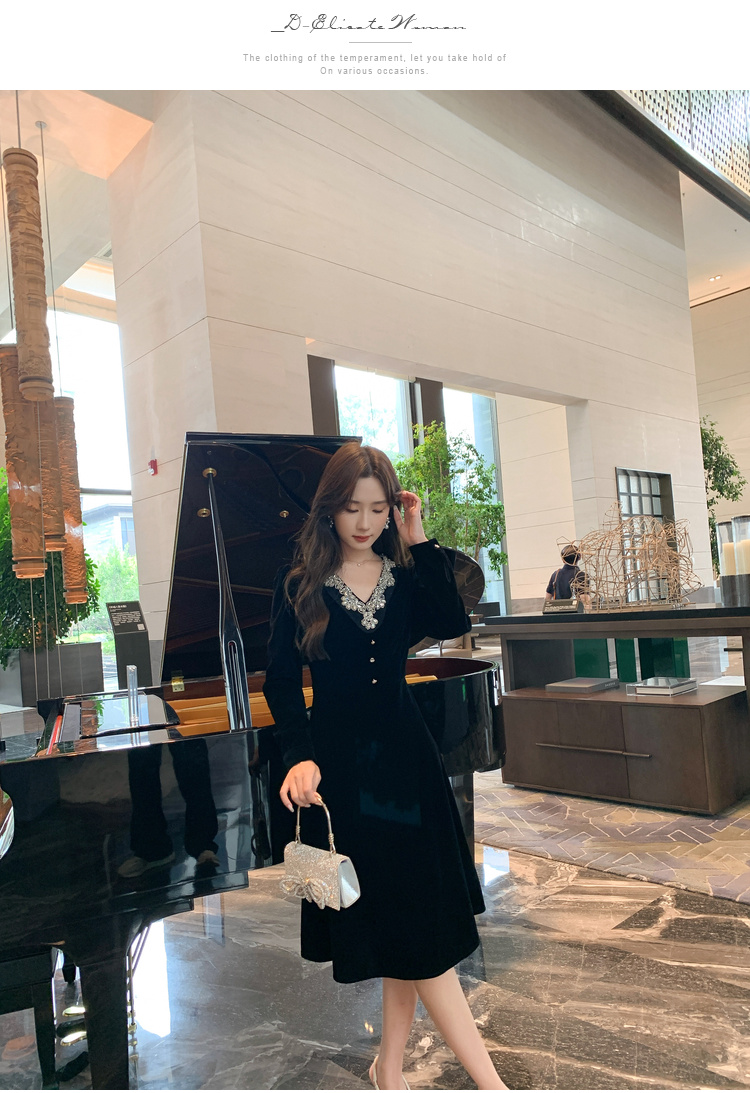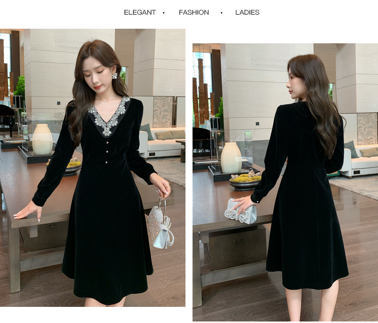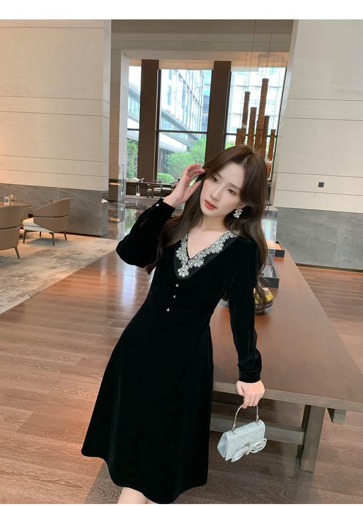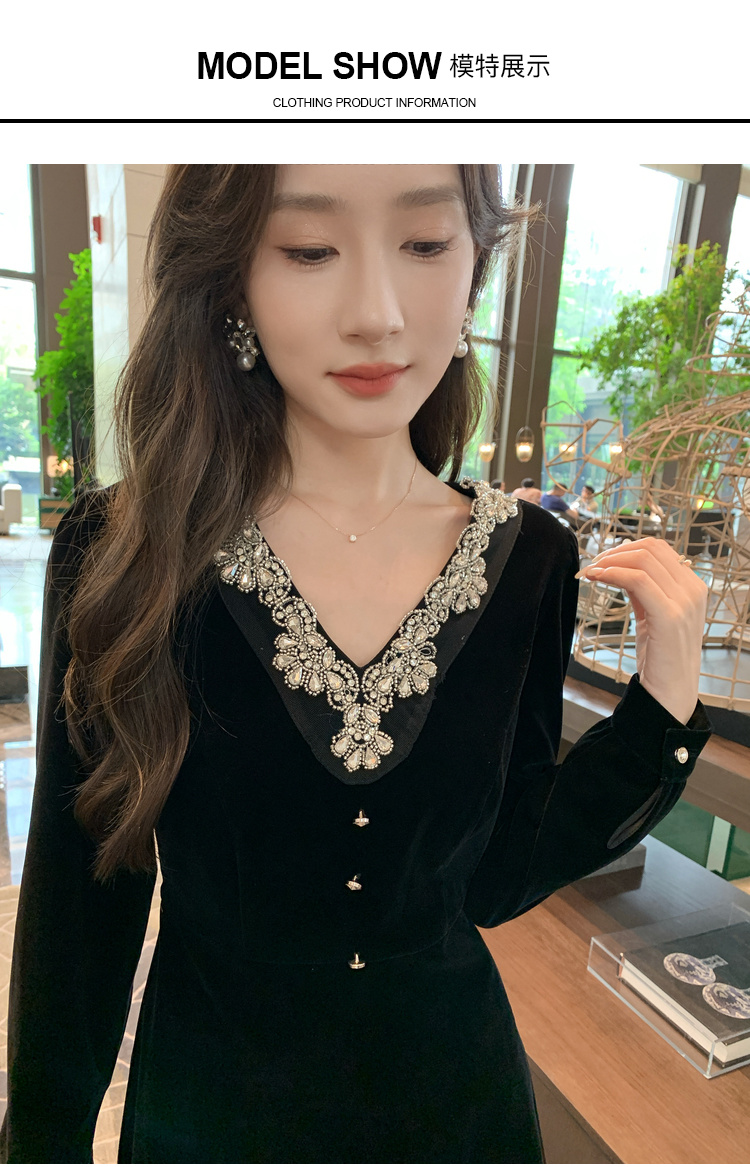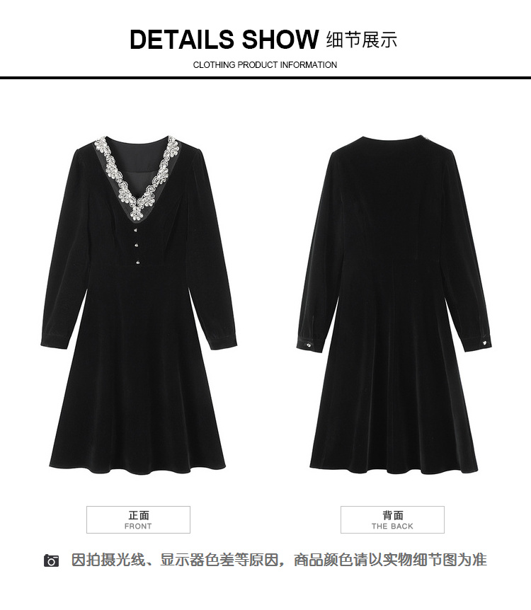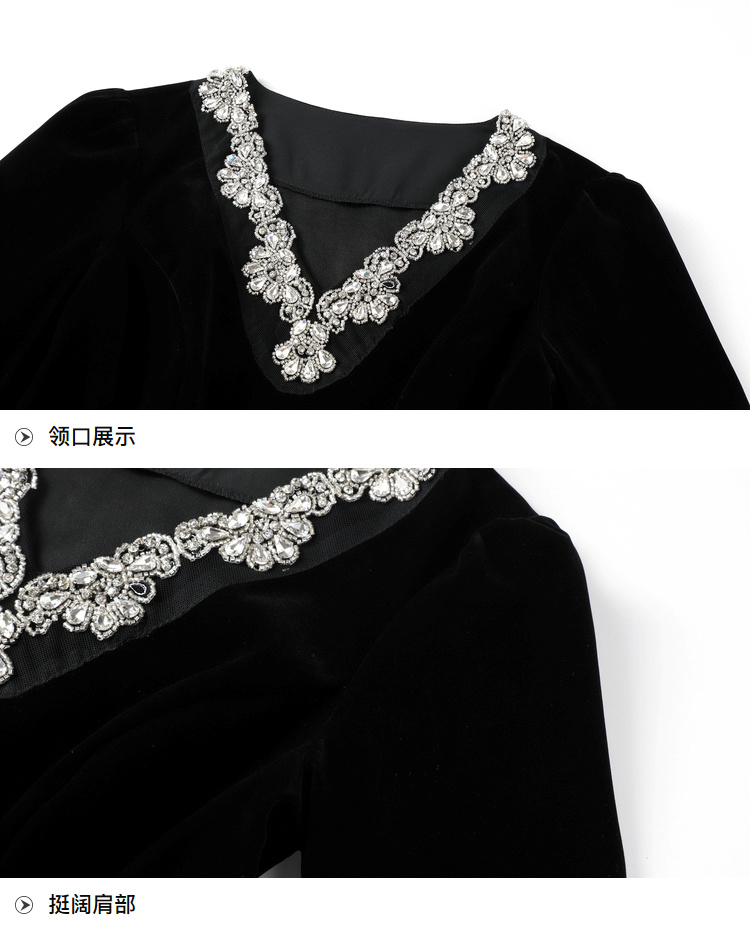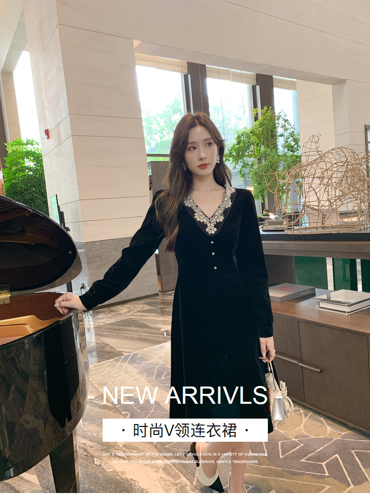 奢姿大码女装2025秋季减龄钻饰设计V领裙子胖妹妹时尚丝绒连衣裙9943853560