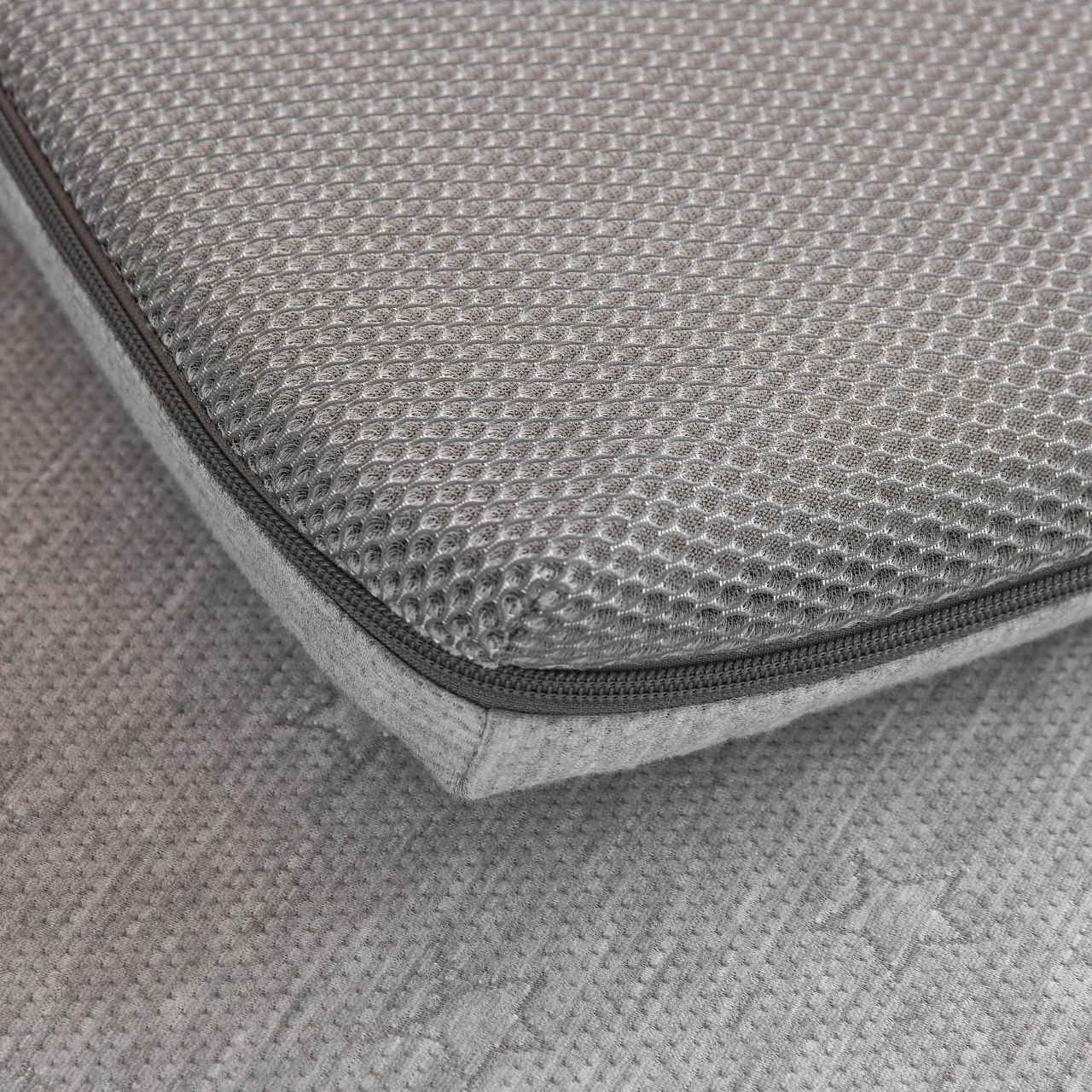 1. 针织空气层面料,灰色3D透气网布,吸湿透气。