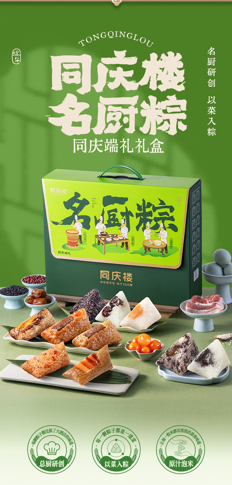 同庆楼 同庆端礼 端午粽子礼盒1240g 10味10棕4蛋 鲜香软糯 48小时发货