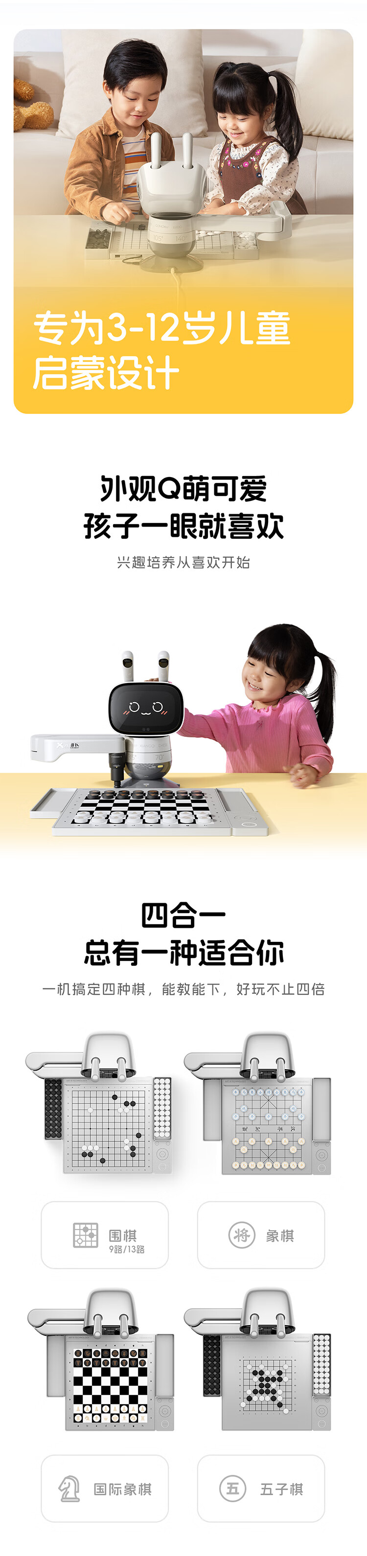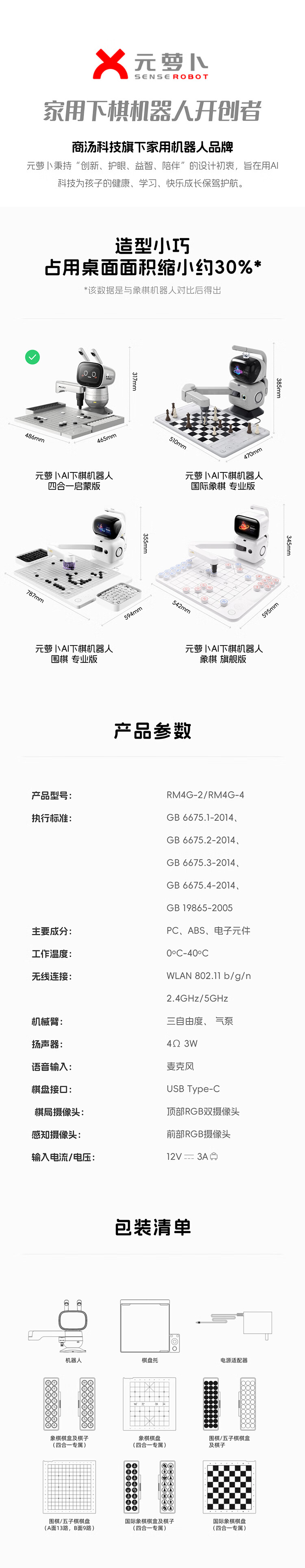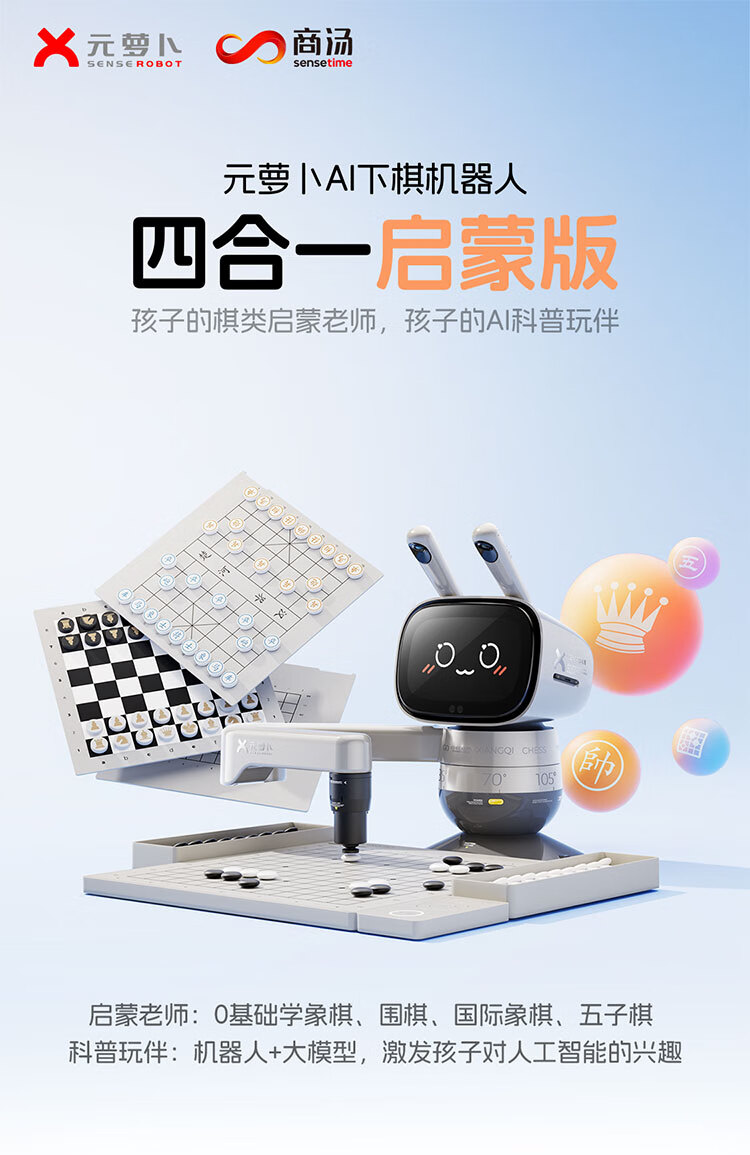 元萝卜SenseRobot AI下棋学练机器人 象棋 围棋 国际象棋 五子棋【四合一】3-12岁 启蒙 学棋 陪练 对弈 家用学习