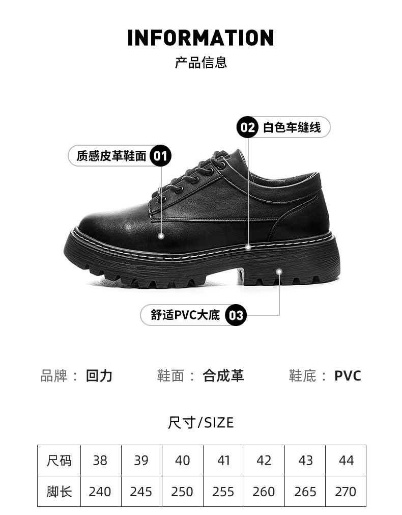 回力男鞋子2025秋季新款英伦风韩版潮流休闲皮鞋黑色厚底小皮鞋男