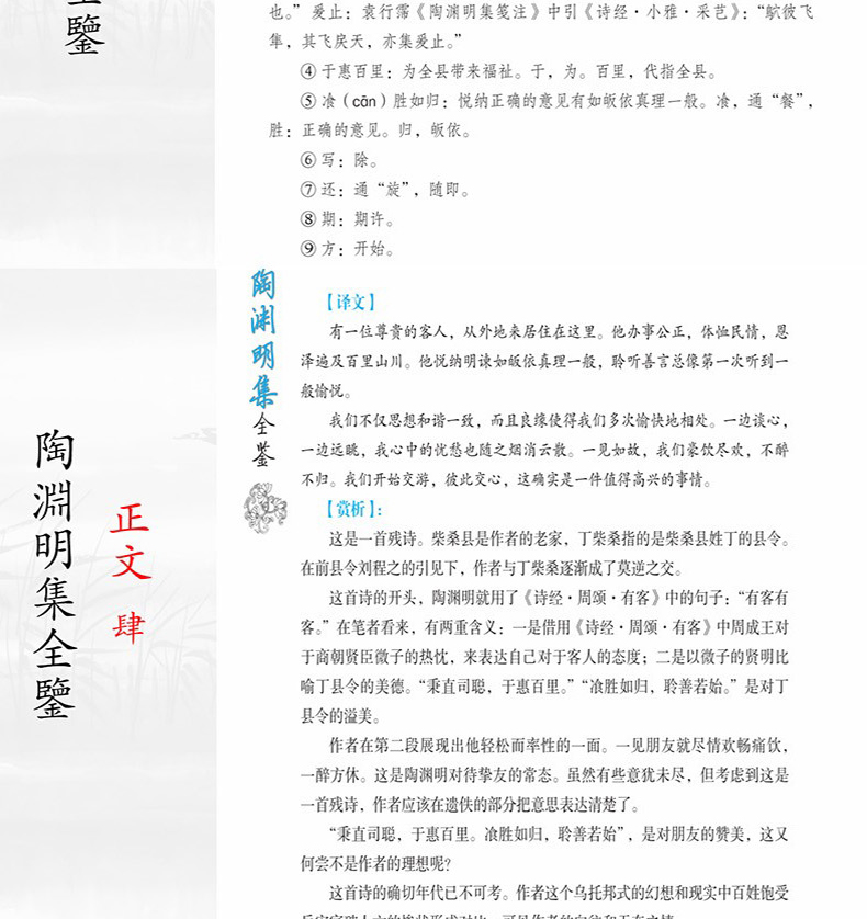 【官方正版】陶渊明集全鉴 初高中生语文文言文学习背诵辅导书 青少年国学经典知识课外拓展书 唐诗宋词作品合集 桃花源记原文解析