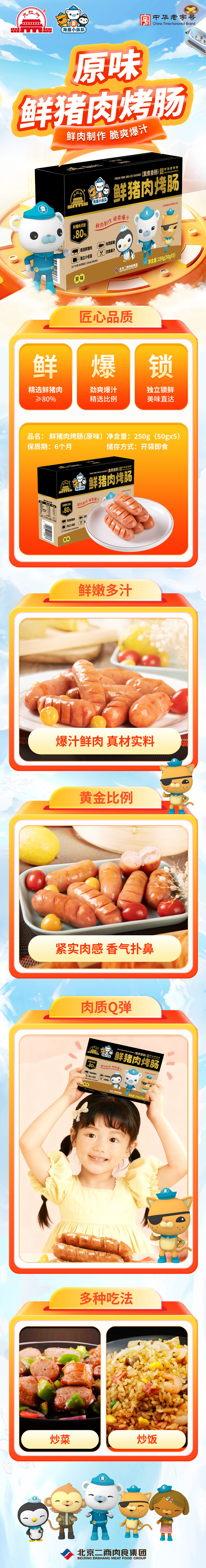 大红门&海底小纵队联名款“鲜猪肉烤肠(原味)250g”